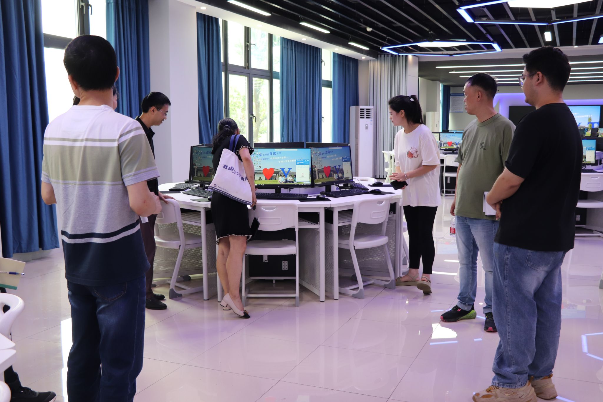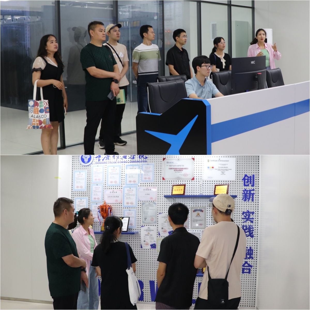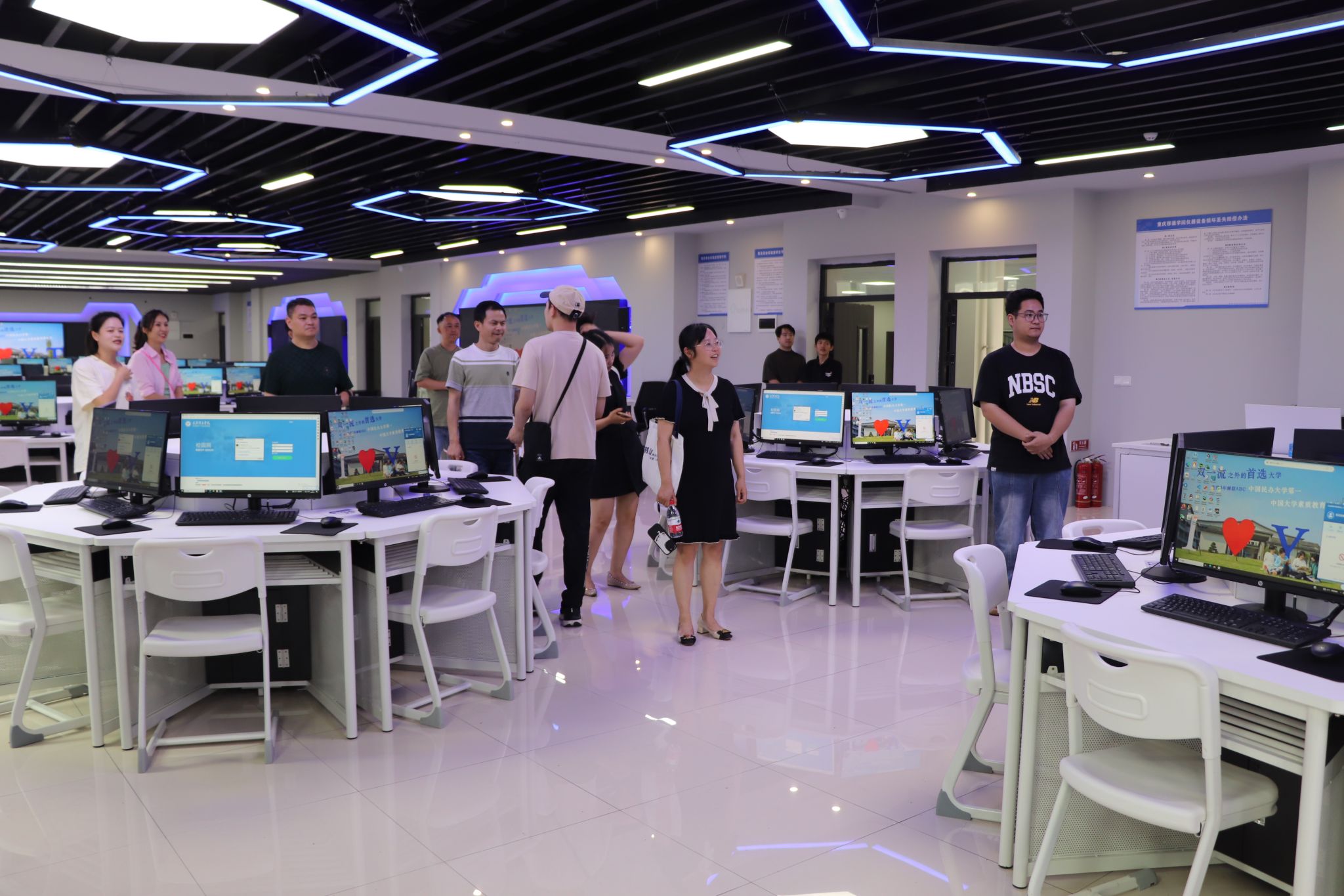 会后,重庆化工职业学院一行在我校吉主任的陪同下先后参观了我校校情驾驶舱和实训中心实验室机房等场所,实地感受考察我校信息化建设情况后,尚主任一行对我校智慧校园的建设给予了高度赞扬。