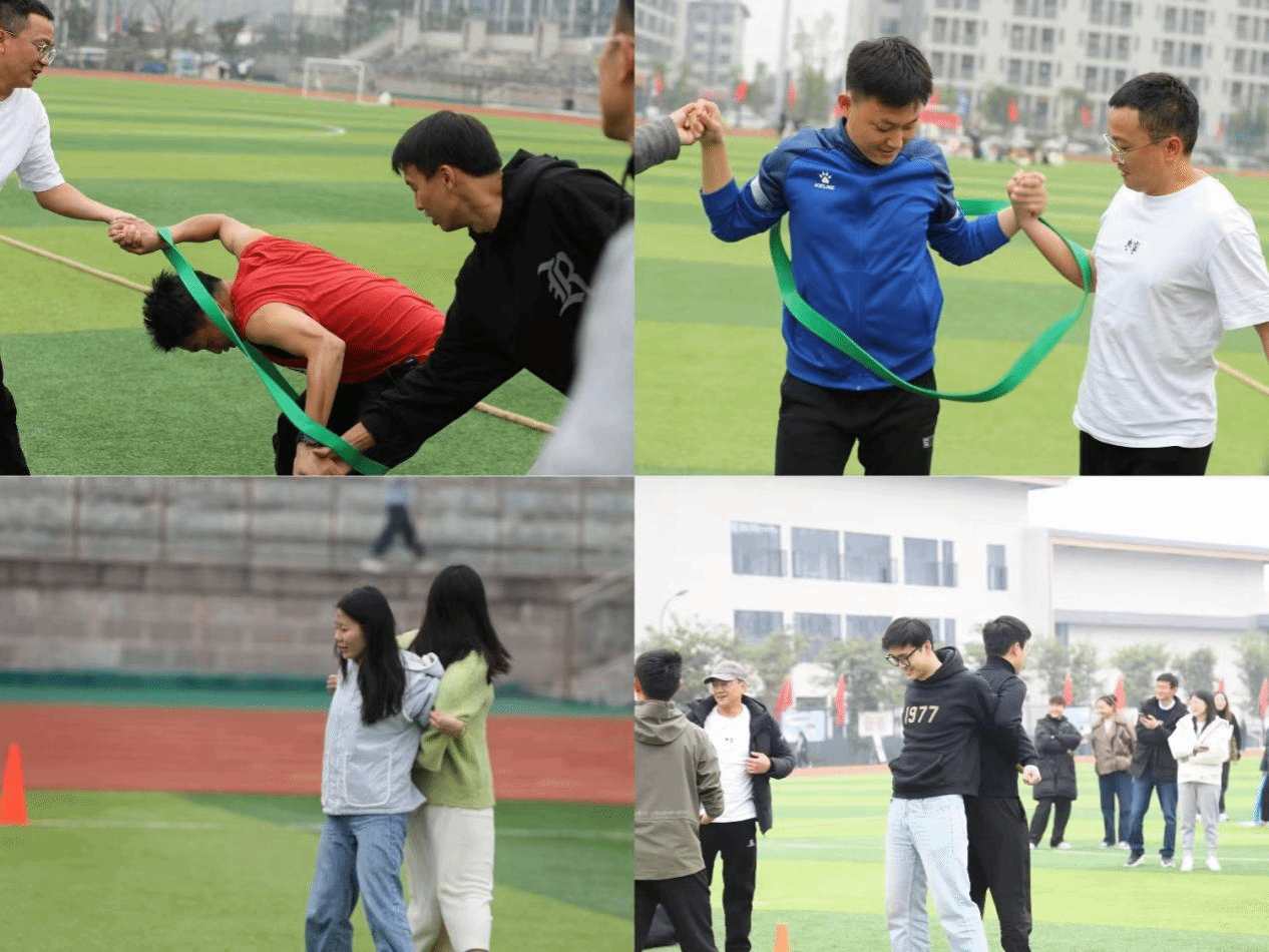 穿绳挑战环节,每个小组的成员手拉手站在一根绳子上,通过团队的力量将绳子穿过自己的身体,再穿过下一个队员的身体,依次进行。这个环节考验了团队成员之间的信任和合作,大家展现出了顽强的毅力和团队精神,不断突破自己的极限。还有蒙眼大作战环节、你画我猜环节,场面异常欢乐。