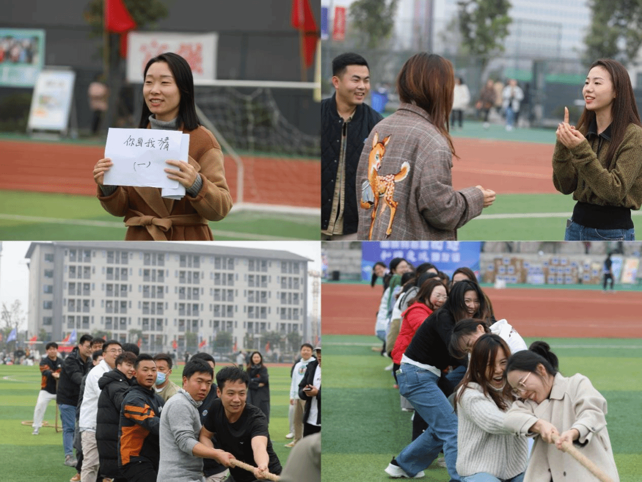 最后,一场扣人心弦的“拔河比赛”将整个活动推向了高潮。参赛者们全力以赴,紧握绳子,脸上充满了坚定的决心和必胜的信念,为自己的队伍拼尽全力。这个环节不仅展现了老师们的团队协作精神和不屈的拼搏意志,更让他们在激烈的比赛中感受到运动的快乐和成就感,彻底释放了紧张的压力。