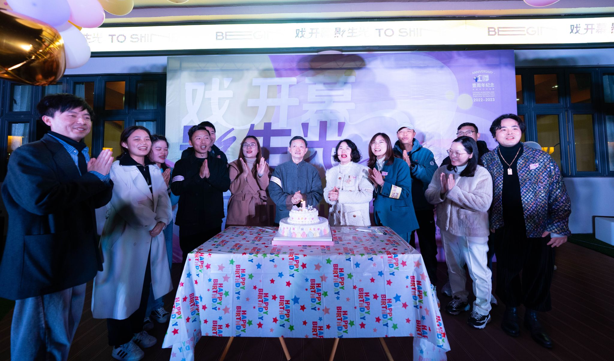 夜幕降临,灯光闪烁,美好的时光总是过的飞快,令大家激动的时刻也随之而来。总结会最后,王芳副院长同老师和同学们一起点燃了庆祝戏剧影视学院一周岁的蜡烛,并切下了第一块蛋糕,全场响起了热烈的掌声。大家一起分享着蛋糕,为戏影的美好前景祝福,掌声和欢笑声在夜幕中久久激荡,总结会在师生大合唱中落下帷幕。