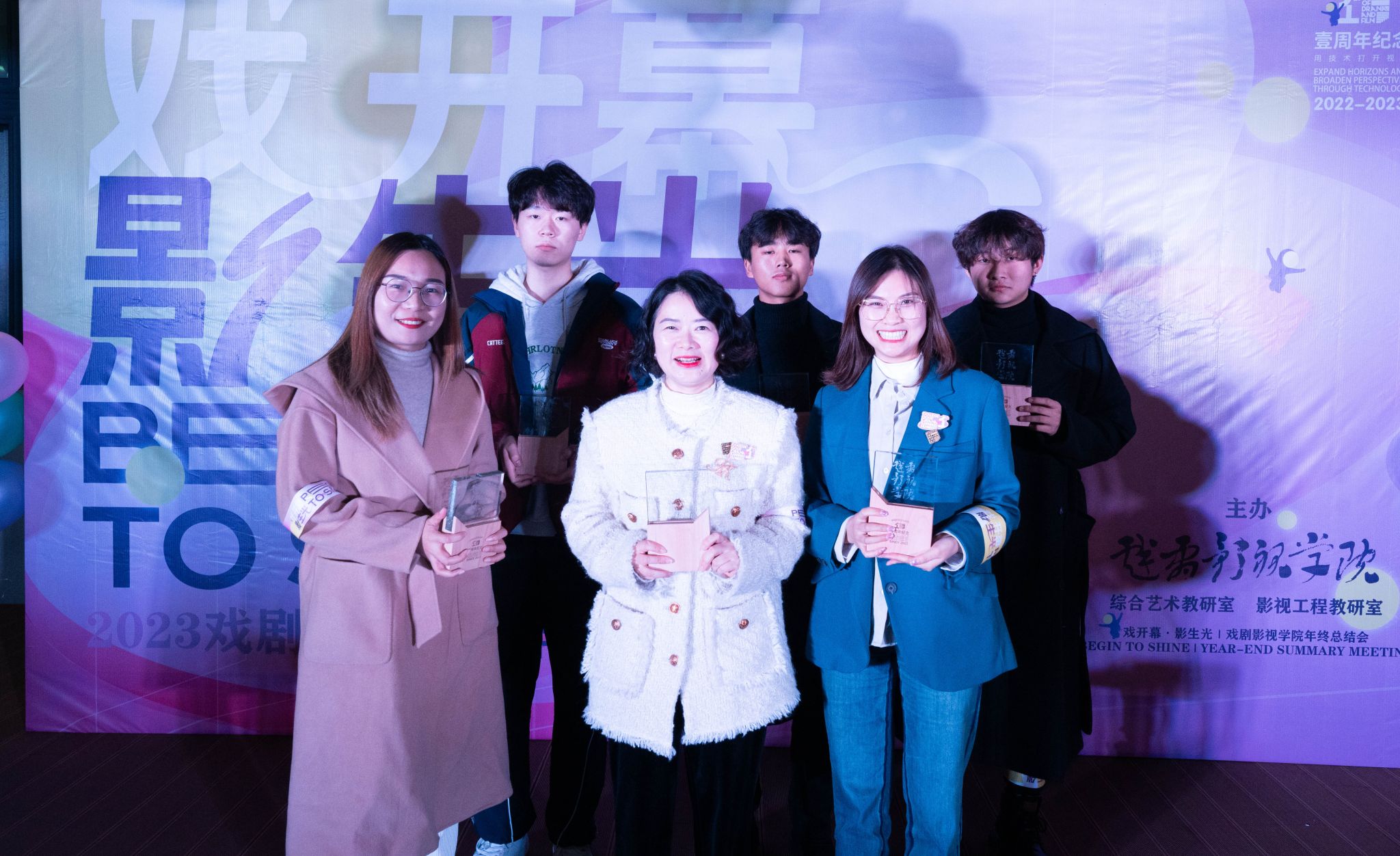 在师生们的精彩分享中,颁发了一年以来的学院贡献相关奖项,王芳副院长、曾玉娇老师、廖炳屹老师、周极老师、郭嘉琦老师、熊琳老师、程略晋老师、李姗老师,戏影学生谭双雪、潘坤烨、殷瑞、沈奇、粟娅、尹韵宜、蒋渝、李雯潇、梁高智、刘云秀、邓雅薇、温梦迪等同学获得各类奖项。