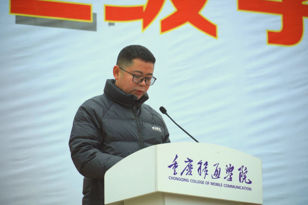 綦江区通惠街道人民武装部副部长王竹元讲话,首先他向綦江校区2022级新生军训工作的顺利开展表示热烈祝贺。他提到,开展大学生军事训练,是国防教育的重要组成部分,更是加强国防后备建设力量的时代要求。希望同学们珍惜军训机会,树立争先创优、勇争第一的思想,自觉服从指挥调度,树立优良作风。同时王部长向教官队伍也提出相应要求,以身作则、科学训练。最后鼓励同学们积极参军,为建设社会主义现代化强国,为实现中华民族伟大复兴贡献自己的青春力量!