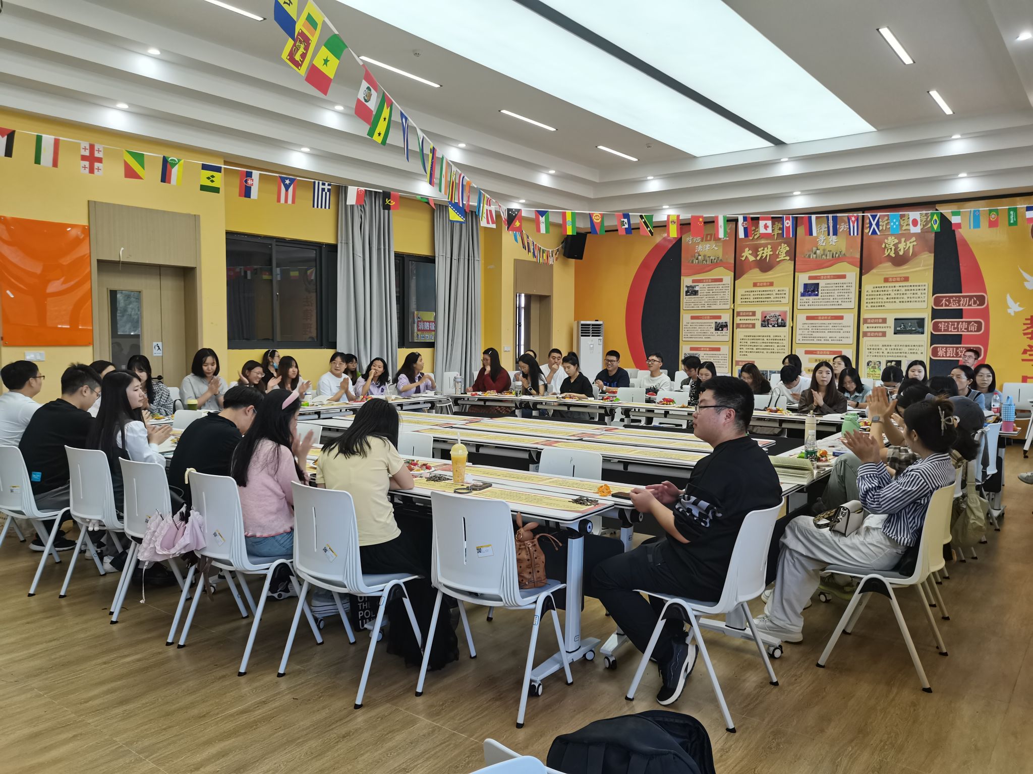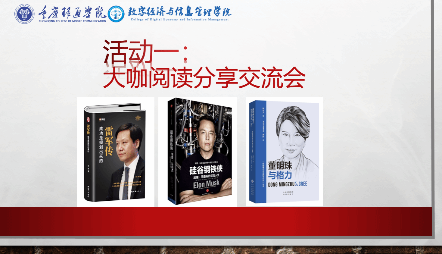 在国庆佳节之际,为庆祝新中国华诞,弘扬红色文化,增强教师的爱国情怀与历史使命感,10月16日下午13点,数字经济与信息管理学院联合新商科教学部在瀛溪书院回声报告厅举行了“红色印记·智慧启航”大咖阅读活动。首先由主持人李若玲老师向各位老师介绍此次读书交流会的目的和线上大咖阅读的渠道,期待通过此次主题读书活动,促进两个学院的教师深入交流,促进知识融合与跨学科交流。