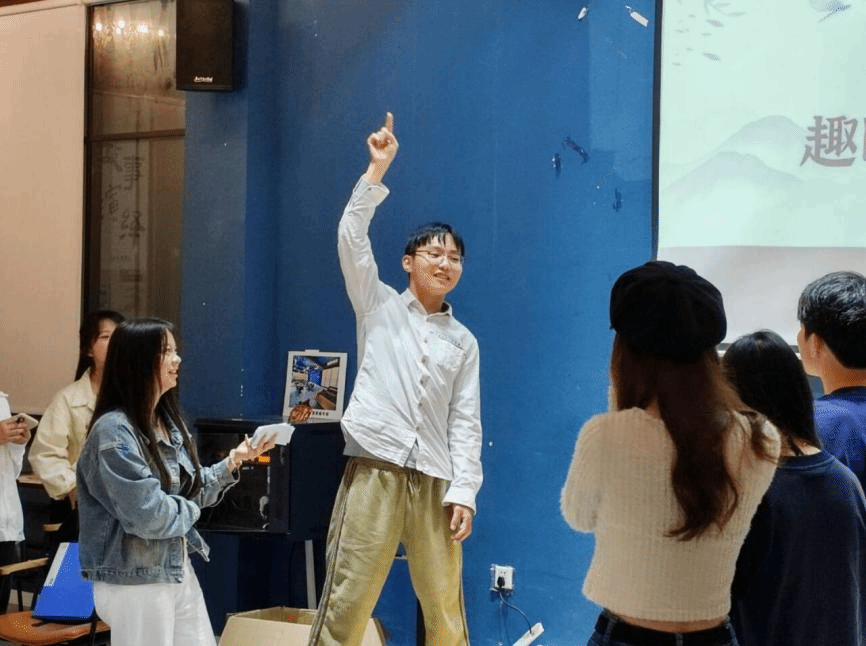 接下来进行了趣味小游戏环节。这些游戏不仅可以考验大家的团队协作能力,还可以展现了同学们的智慧和勇气。在“心有灵犀猜字词”游戏中,各部门的选手们充分发挥了自己的想象力和表达能力,通过巧妙的描述和猜测,展开了激烈的竞争。在“找水果”游戏中,选手们在蒙眼的情况下,通过听觉和触觉来寻找隐藏在场地中的水果。有的队伍在游戏开始前制定了详细的策略,有的队伍则依靠着选手们的个人能力和直觉来应对挑战。