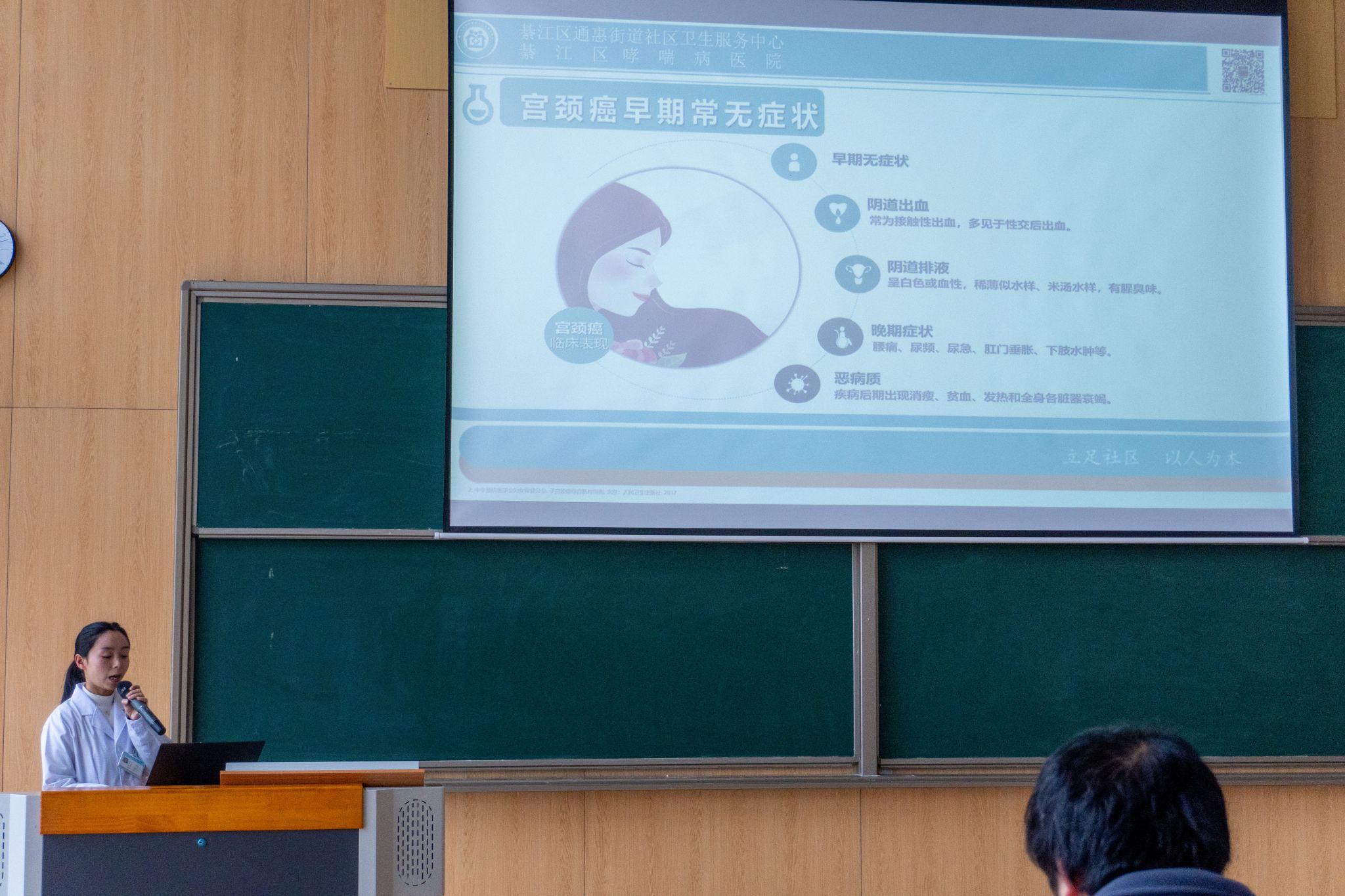 宫颈在女性的一生中发挥着重要的生理作用,邹医生结合医学案例,形象地阐述宫颈疾病对女性健康的影响。她指出其子宫颈癌是中国15-44岁的女性第三常见的恶性肿瘤。邹医生还列出详细的数据图表,让同学们直观明白晚期宫颈癌的生存率之低。在场的同学们对宫颈癌的高患癌指数议论纷纷,邹医生补充道:早期发现并规范治疗宫颈癌对提高治愈率和生存率非常重要;如果不规范治疗或耽误了最佳治疗时期,将会在变成浸润癌后加速恶化。因此,广大女性朋友们应当加强自我保健意识,定期进行宫颈检查,做到时刻预防,早发现、早治疗。