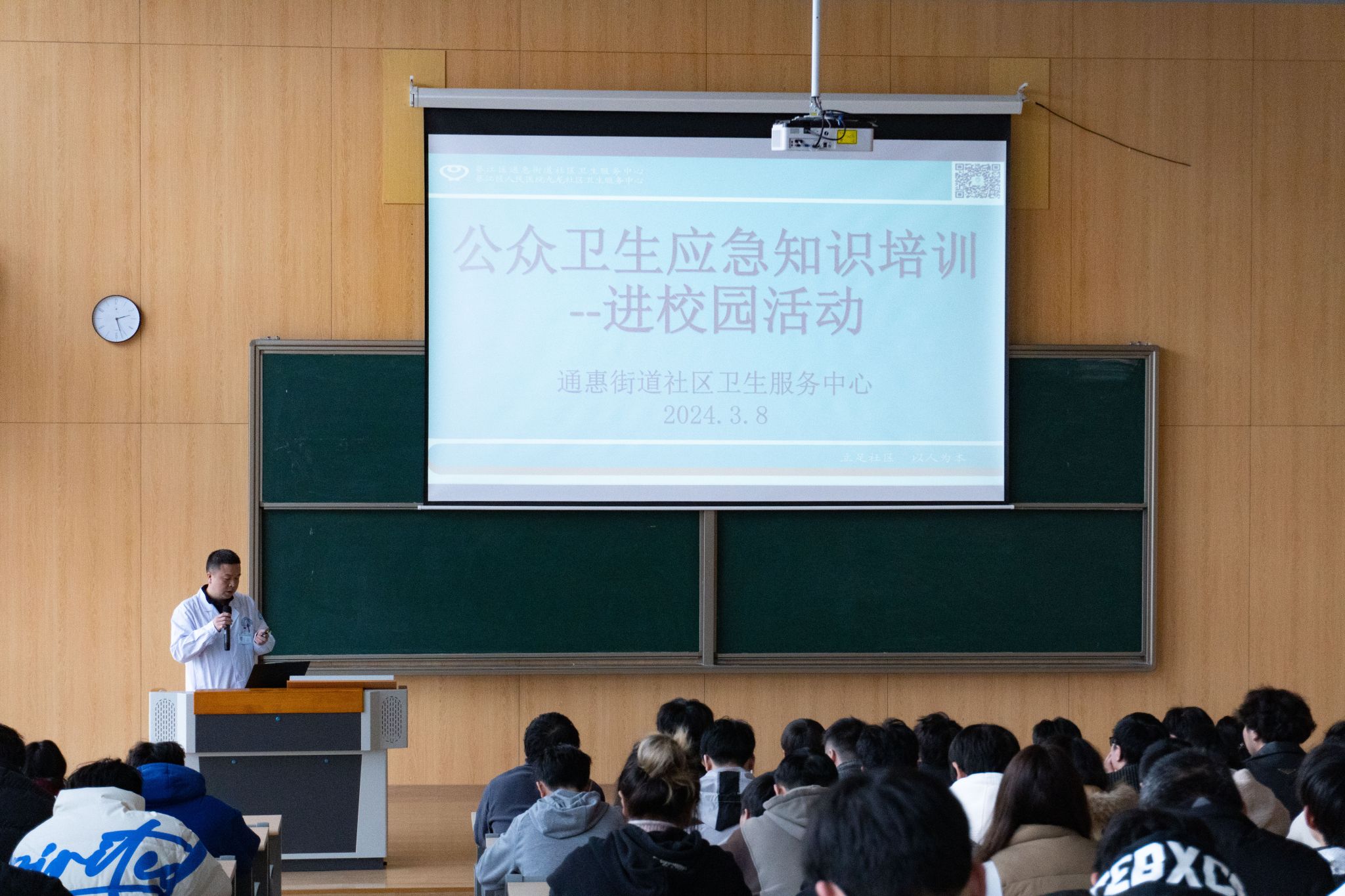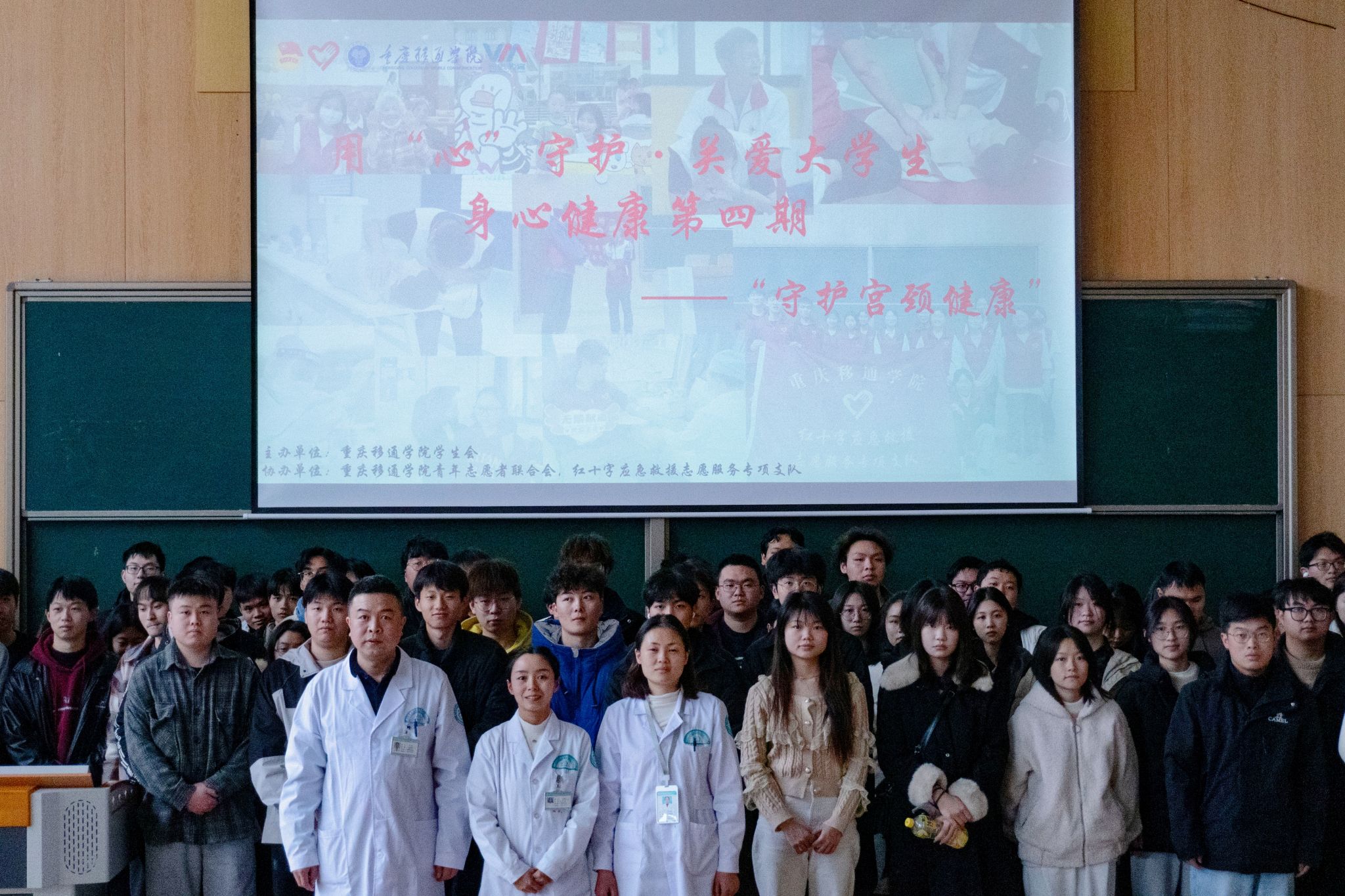 宫颈健康是一个关系到女性健康和生命安全的重要问题。为提高广大同学对宫颈健康的认知,增强自我保健的意识,共同为女性的健康保驾护航。同时迎接第114个国际劳动妇女节,我校学生会和红十字应急救援志愿服务专项支队携手綦江区通惠街道社区卫生服务中心专业医师,于2024年3月8日下午14:00在玉棠书院阶梯教室展开“守护宫颈健康”公益课堂。本次活动共170人参与。