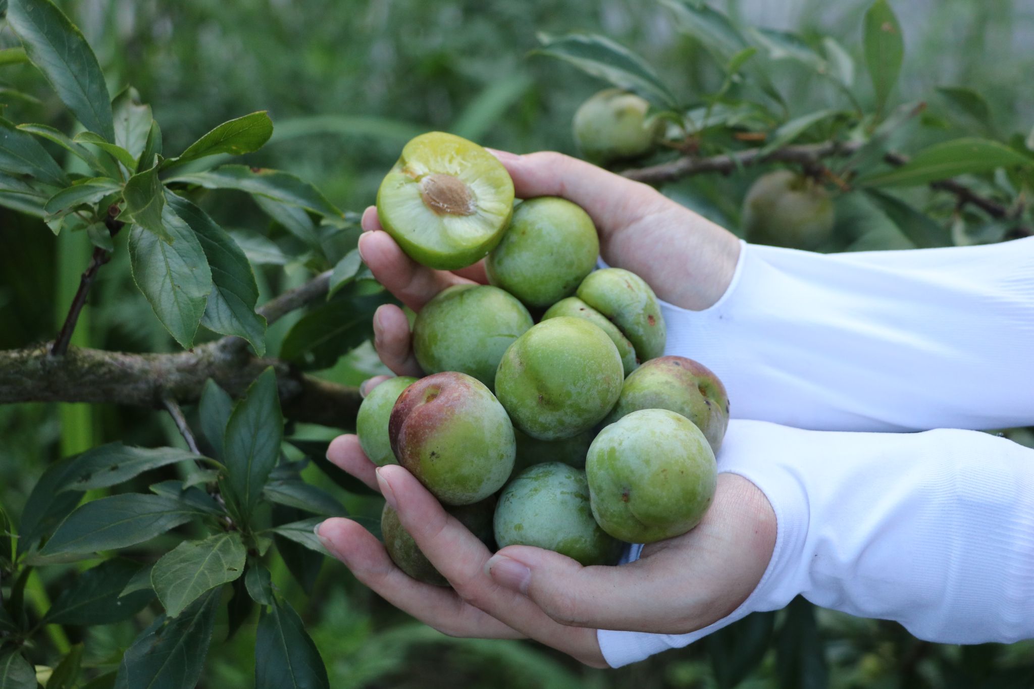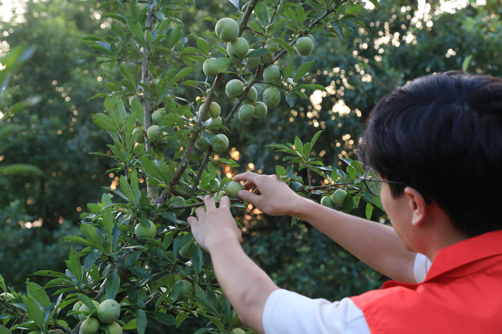 下午,阳光正好,队员踏上了前往红岩村李子园的旅程。步入果园,队员们发现今年的李子园,并未如往年那般硕果累累,而是稀疏的枝头挂着零星几颗李子,与往昔的繁茂景象形成鲜明对比,让人不禁心生惋惜。与果园老板沟通发现,今年受天气影响,雨水较多,打落了垂挂在枝头上的李子,导致今年李子收成大大降低。
