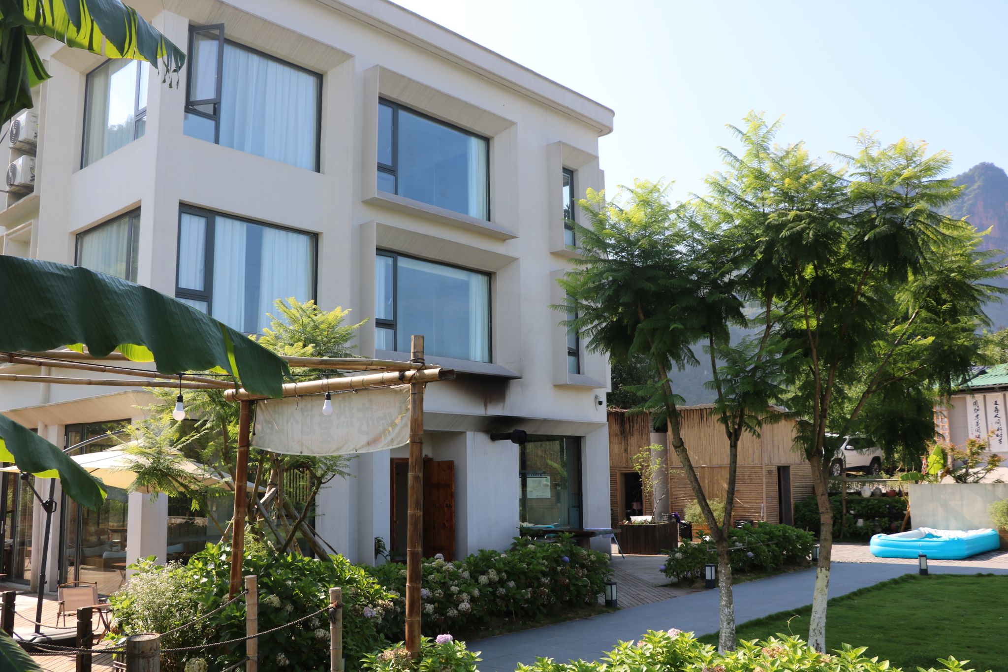 瀛山院子,一个藏匿于青山绿水间的世外桃源,是翁杰先生对乡村生活深刻理解与奔赴的结晶。步入院子,映入眼帘的是相较于周围农家乐别具一格的园林,它们依山而建,与自然环境和谐共生。民宿的每一间都融入了老瀛山景区的独特景观与翁杰先生的独特设计理念,既保留了乡村的原始韵味,又不失现代生活的雅致与轻奢。