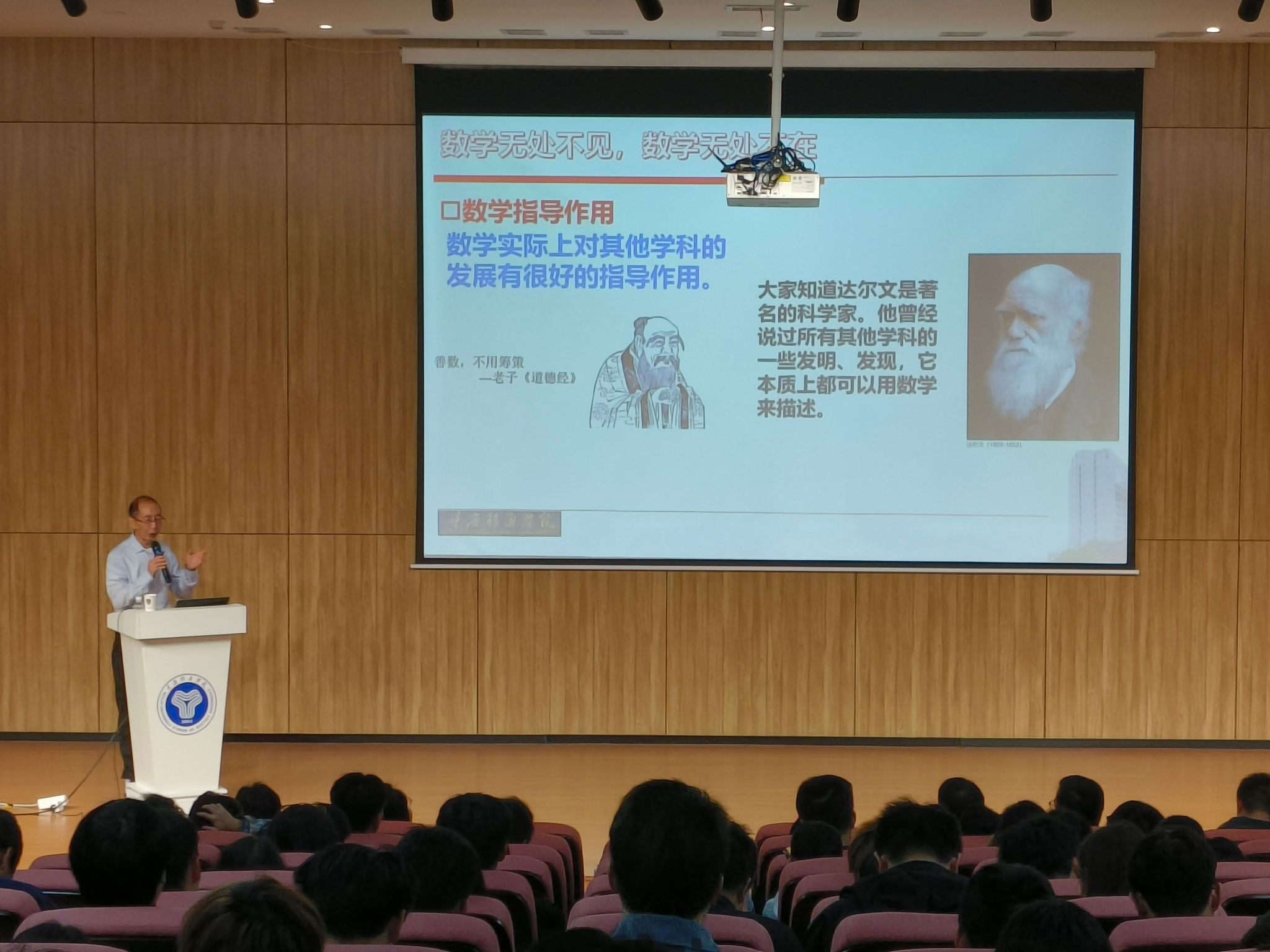 杨教授以“数学的美与妙”为开篇,巧妙地引导同学们进入数学的奇妙世界。他通过笛卡尔的爱情故事、蒙娜丽莎的微笑和埃菲尔铁塔的黄金比例等,展示了数学与艺术、生活的紧密联系,帮助同学们理解数学无处不在、无时不在。杨教授进一步强调,数学不仅仅是抽象的理论,更是一座连接理论与实践的桥梁,通过一系列生动的案例,阐述了数学在日常生活中的应用,如“海滩占位”问题、商业中的数学建模,甚至医院的CT扫描、资源勘探、图像处理等领域,数学都发挥着关键作用。