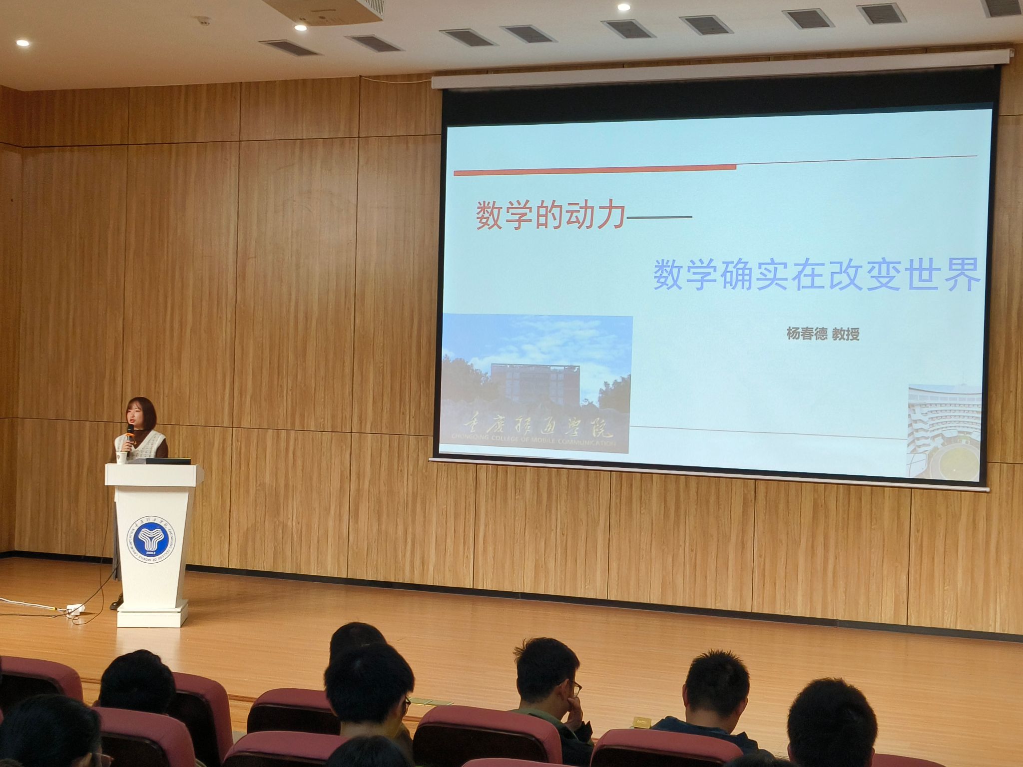 讲座的最后,杨教授以“爱”为出发点,鼓励同学们结合学校“信息产业商学院”的教育理念,发现生活中的数学问题,培养数学思维。他强调,数学思维不仅能帮助同学们应对学习中的挑战,还能提升逻辑推理和创新能力,为未来的职业生涯奠定坚实基础。杨教授还鼓励同学们积极参加数学竞赛,进一步巩固和拓展数学知识,践行“学中用,干中学”的理念。