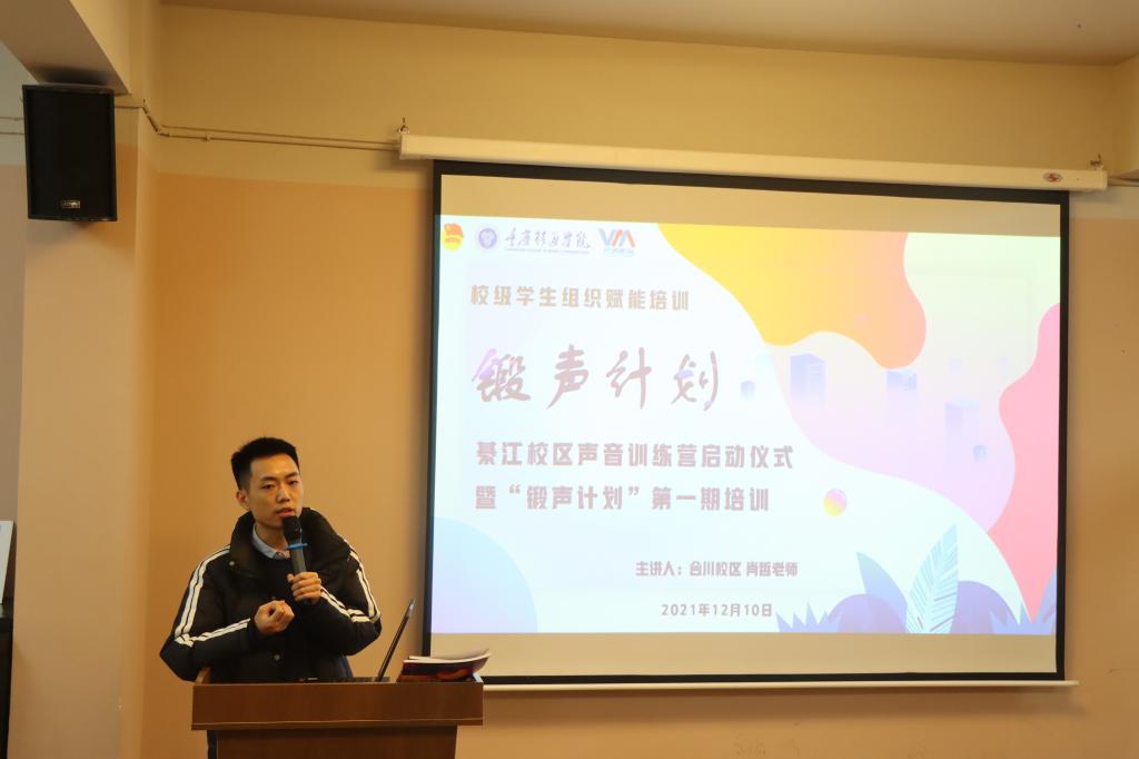 声音是学生组织宣传的主要载体,为提高广播站学生综合能力,增强其业务素养,合川校区肖哲老师于12月10日晚18:30在綦河书院三号楼小石潭·多功能室面向綦江校区团委青团工作室广播站全体干事开启“锻声计划|请相信‘声音’的力量”的专题培训会。
