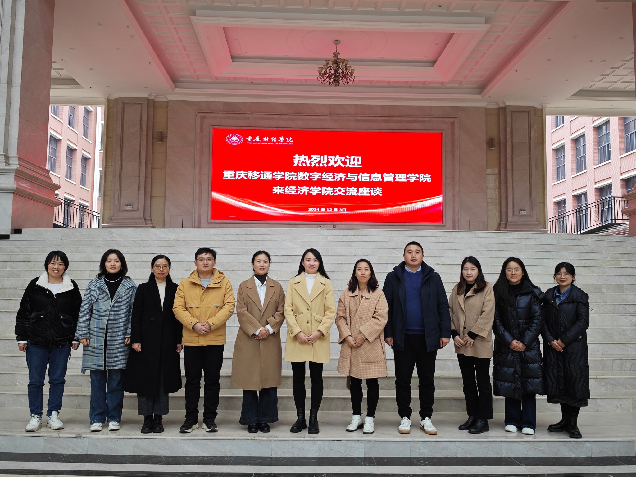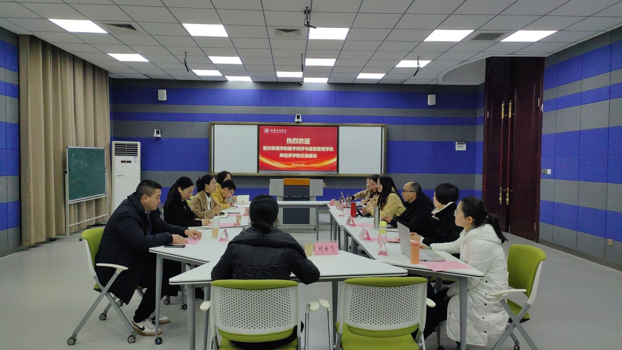12月3日上午,重庆移通学院数字经济与信息管理学院院长刘贵容、副院长王哲一行,前往重庆财经学院经济学院交流。本次交流聚焦数字经济专业建设,会议在重庆财经学院教学楼1220智慧教室举行,由重庆财经学院经济学院副院长刘春兰主持。与会人员还有重庆财经学院经济学院经济统计系主任伍度志、熊萍、李梨、马雨、游韵、唐燕、刘云飞等经济统计系部分教师,重庆移通学院数字经济与信息管理学院数字经济教研室主任陈明燕、数字经济专业负责人乔兴刚及核心课程负责人冉叶虹。