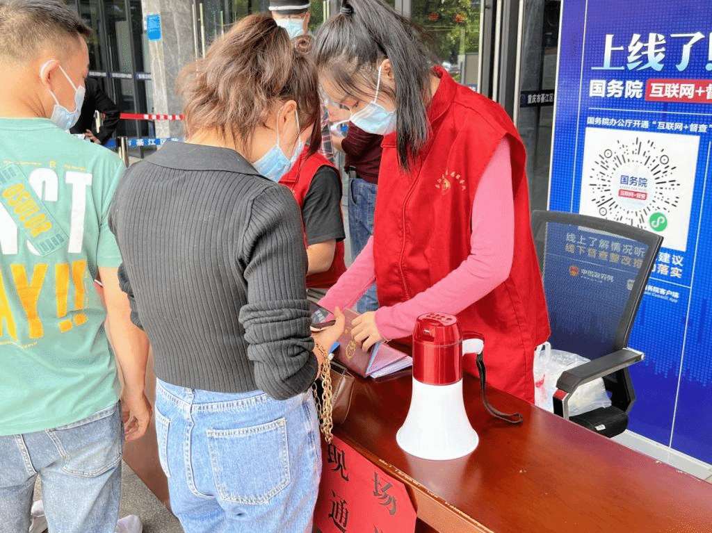 “520”,因谐音“我爱你”,很多新人选择在这个特别的日子里登记结婚,步入婚姻殿堂,所以5月20日,各地民政局也迎来结婚登记热潮。为减轻民政局工作人员压力,有效维护登记现场秩序,并为各位新人送上专属于重庆移通学院的祝福,我校完满课堂志愿服务专项支队的2名志愿者在符合防疫要求的情况下于5月20日下午前往綦江政务服务中心民政局开展“牵手520·爱就在身边”520特别活动。