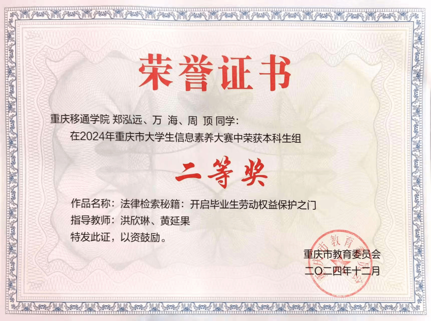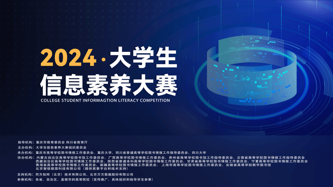 近日,由四川、重庆等省、自治区、直辖市高校图书情报工作指导委员会主任委员所在院校图书馆组成的高校大学生信息素养大赛组织委员会举办的“2024 年大学生信息素养大赛”圆满落下帷幕。经过校级选拔赛、省赛淘汰赛、省赛决赛等赛段的重重比拼,我校组建的5支队伍经过激烈角逐,1支队伍成功晋级省级决赛,并最终荣获二等奖。