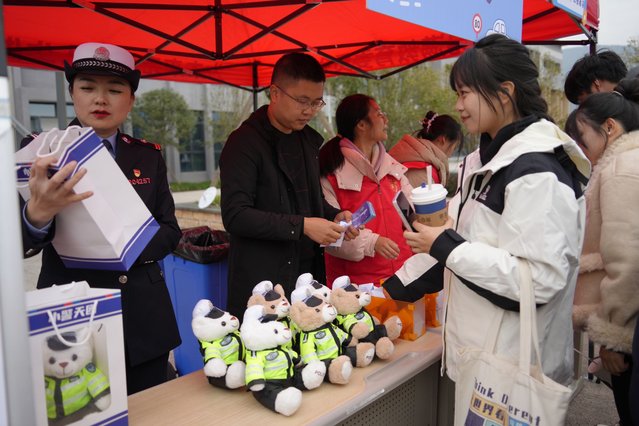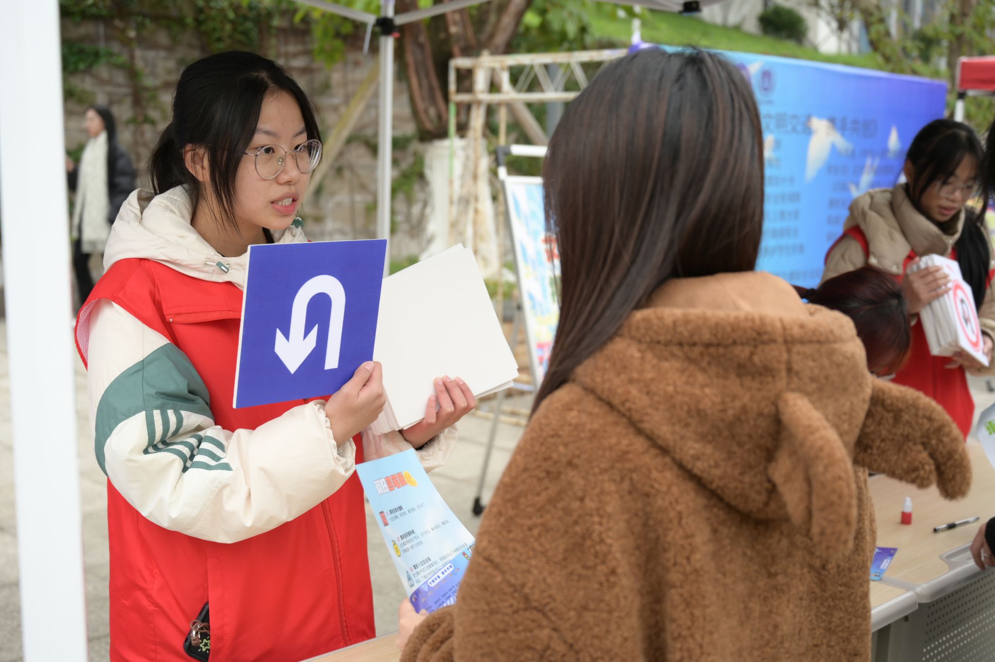 11月29日下午,为积极响应“全国交通安全日”的号召,增强师生交通安全意识,营造安全文明的校园交通环境,学校保卫处联合远景学院、校团委,精心策划、周密筹备,在瀛山图书馆广场举办了以“文明交通,携手共创”为主题的全国文明交通安全日体验活动。此次活动特别邀请到綦江区公安局交巡警支队到场指导,为师生呈上一堂生动且深刻的交通安全教育课,吸引了全体在校师生踊跃参与,在校园内掀起一股关注交通安全、践行文明出行的热潮。