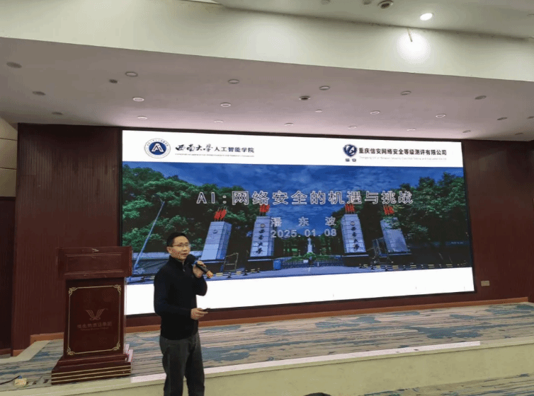 此次活动汇聚了众多网络安全领域的专家、企业代表,共同探讨数字安全面临的前所未有的挑战、AI应用于网络安全的前景、如何通过AI赋能安全运营等方面的问题。网络安全技术沙龙由重庆计算机安全学会秘书长林已杰主持,重庆市密码管理局二级调研员查炳研发表了精彩致辞,为活动拉开序幕。绿盟科技高级网络安全顾问晏健晨带来《AI+网络安全的技术衍变》,深入剖析了人工智能与网络安全融合的技术发展脉络;西南大学人工智能学院副教授潘东波以《AI:网络安全的机遇与挑战》为题,阐述了人工智能给网络安全领域带来的机遇与挑战;奇安信行业技术总监周肆杰则在《AI技术发展与网络安全应用》的演讲中,分享了AI技术在网络安全实际应用中的成果与经验。