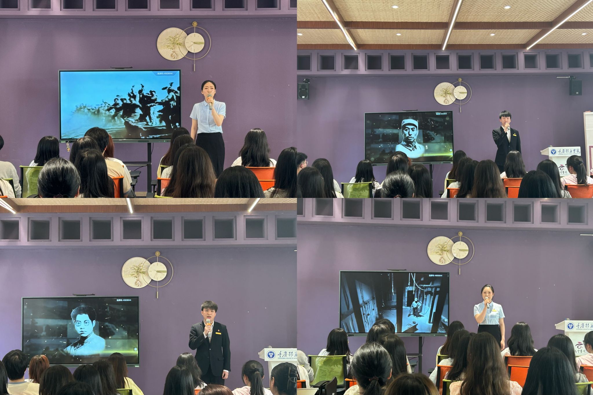 活动伊始,李老师隆重介绍了本次活动的主讲嘉宾,并阐述了本次活动召开的重要意义。随后,江津陈独秀旧居的四位讲解老师拉开宣讲序幕,他们以故事串讲为主要表现形式,辅以背景音乐、视频,通过讲述杨闇公、杨靖宇、赵一曼、邓稼先、黄文秀等一大批不同历史阶段涌现出的先进青年楷模的故事,展现一百年来在中国共产党的引领下,一代代中国青年把青春奋斗融入党和人民事业、成为实现中华民族伟大复兴的先锋力量的精神和风采。