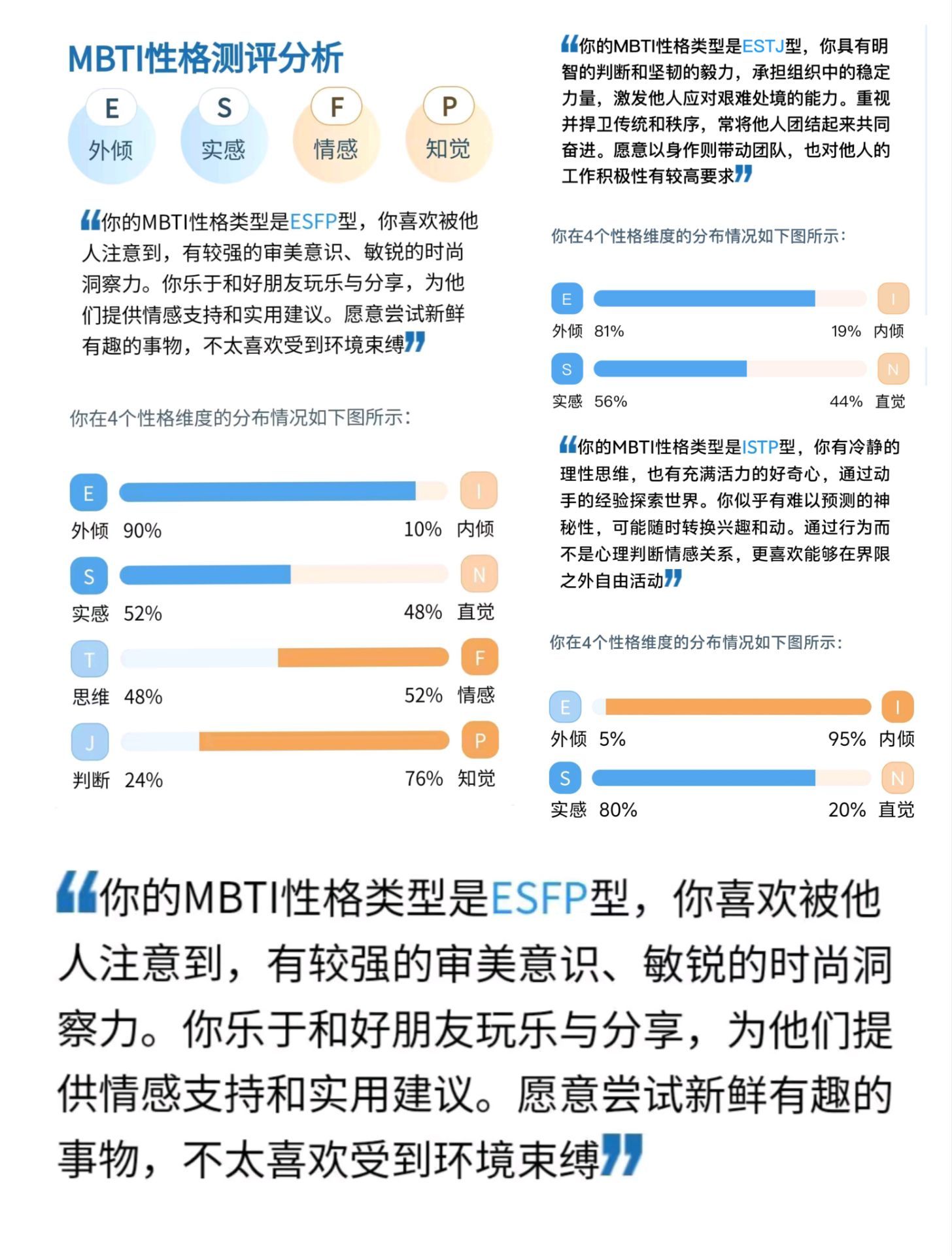 活动现场另外设置了MBTI人格分析区和九型人格分析区,旨在以实践活动为桥梁,为每位参与者提供一段独特的自我成长与心灵体验的旅程。MBTI人格测试通过其独特的性格类型框架,激发个体的自我探索欲望,促进深度认知,加强自我觉察;九型人格测评则助力个体更精准地认识自己的性格类型、个人注意焦点等,为个体在领导力培养与提升上提供明确方向,借助这些测评工具更深入地了解自我。最后同学们前往美食兑换区,兴奋地挑选着自己喜爱的美食。“e人”倾向于选择口味丰富、刺激味蕾的食物,而“i人”则更喜欢选择符合自己口味的甜品。他们一边品尝着美食,一边与身边的朋友分享着自己通过活动了解到的性格特点和喜好,现场充满了欢声笑语,一派温馨。本次活动为“5.25”心理健康月系列活动开展拉开了序幕,营造了积极健康的心理环境与和谐校园文化氛围。