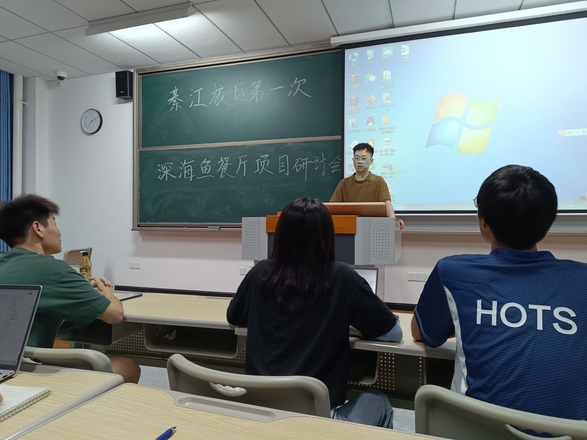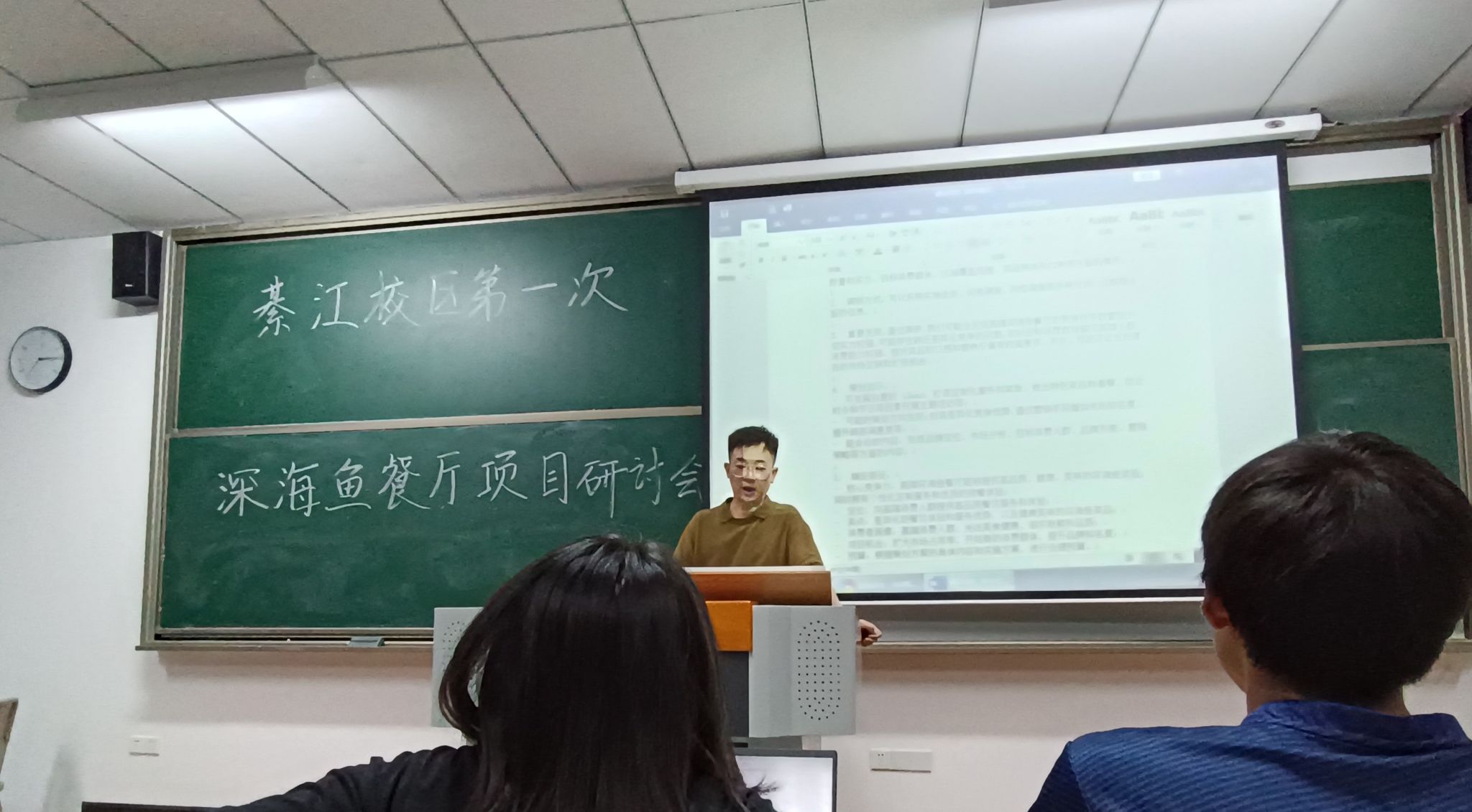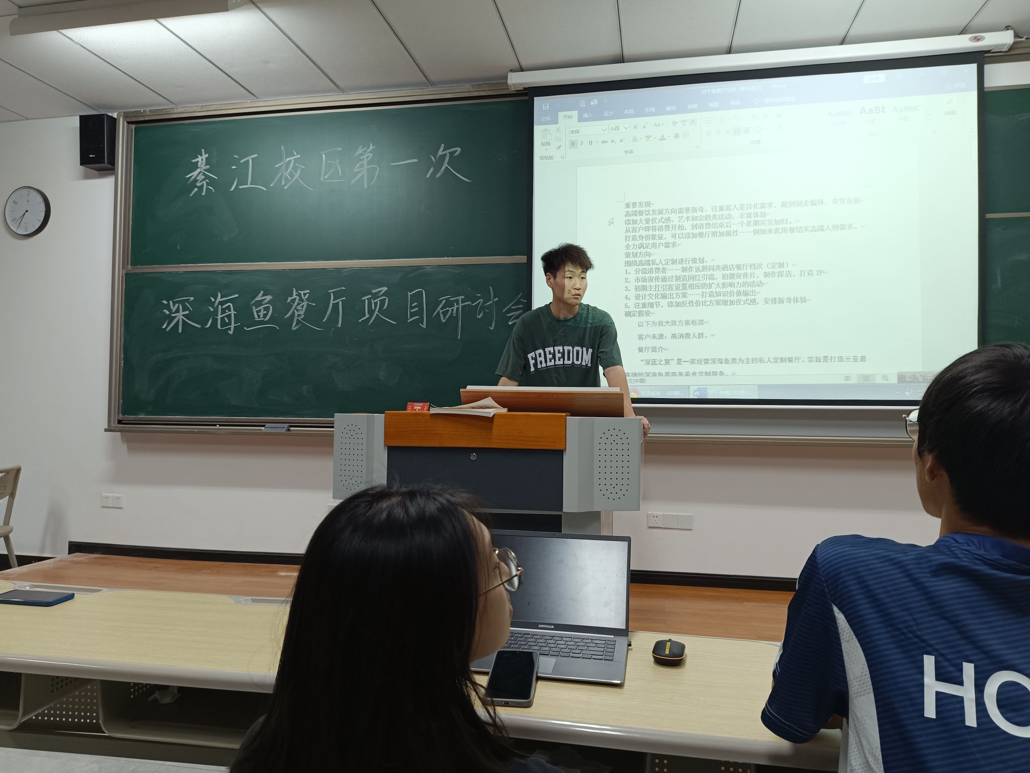 分享部分结束后,大家又各抒己见地讨论着如何来策划该项目。在谈到餐厅的外观风格时,有的同学希望走商务风,有的同学希望走极简风。而又当谈到深海鱼餐厅的核心竞争优势时,大家都陷入了沉思,因为这是一个值得探究的问题。关键时候,张老师站了出来,主动引导同学们从产品、渠道、服务等方面去进行细分和思考,从而挖掘出该项目的核心竞争优势。