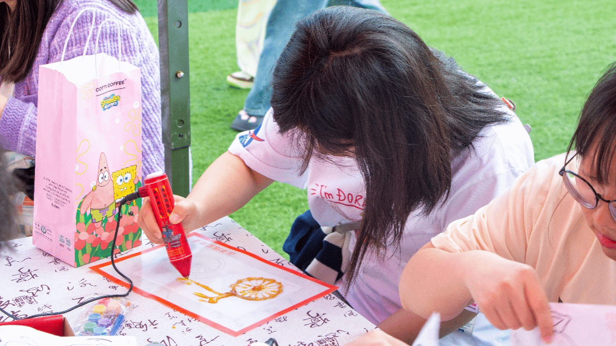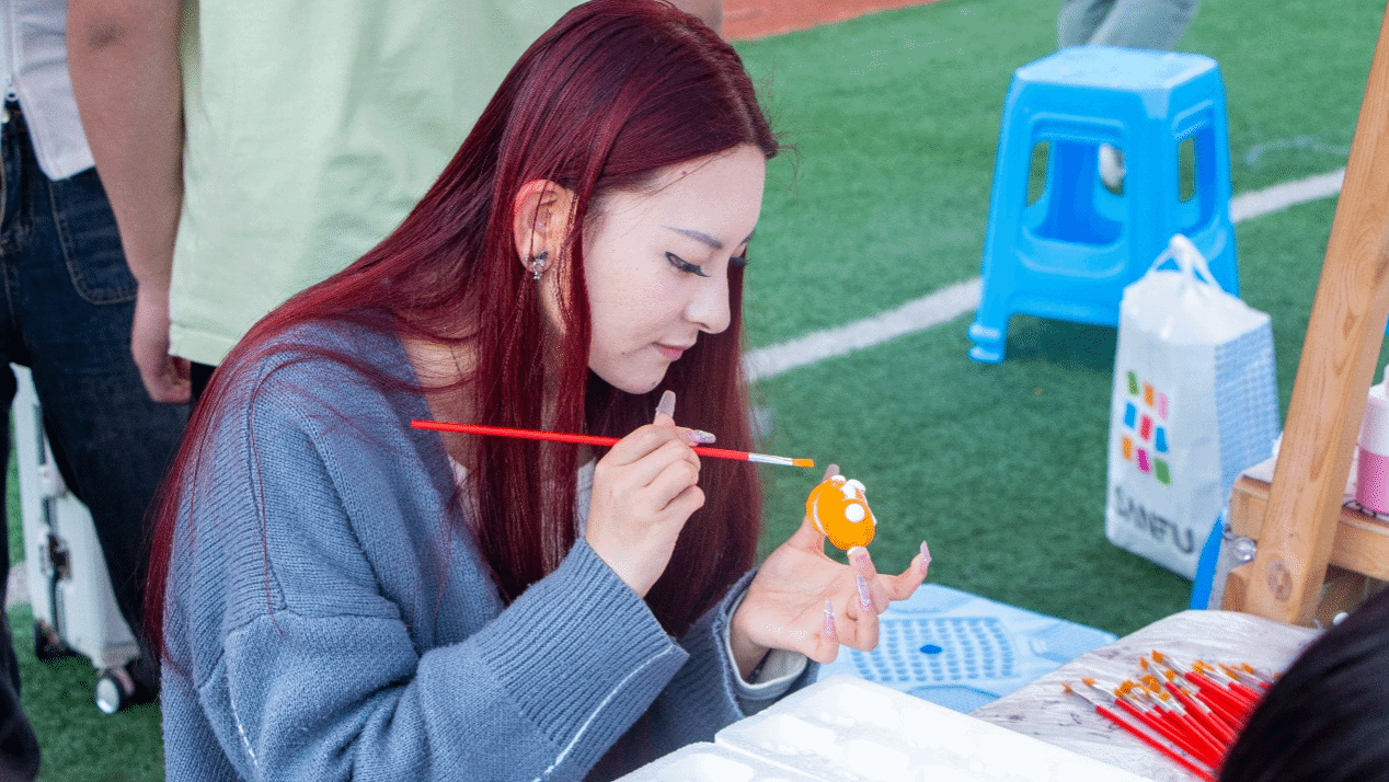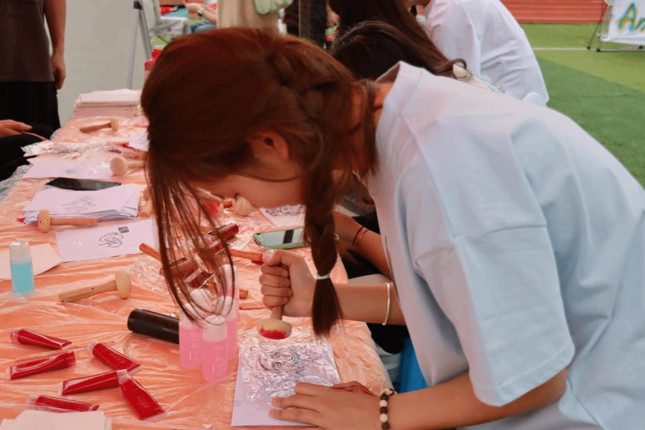 当灯光点亮,角色演绎,一场精彩纷呈的戏剧表演拉开帷幕。在独属艺术的舞台中,同学们发挥创造力参加外围活动进行各种打卡创作。戏剧影视学院开展了涂一面戏的“影”开颜——夏日多巴胺完满涂鸦体验日活动,其中“try个艺术”活动带领同学们一起领略经典台词猜电影、截影猜动画以及艺术摄影。此外“Gao·点颜色”活动中更有多种类型等待同学们去打卡,韵染绘时光的扎染项目、刮彩艺趣阁的刮画项目、彩漆扇韵坊的漆扇项目、乐绘石膏娃娃项目以及“啡”你不可“皂”的咖啡香皂制作。更有“Get·杯反诈咖啡”活动,让百余名同学共同参与反诈多巴胺涂鸦墙设计与制作。