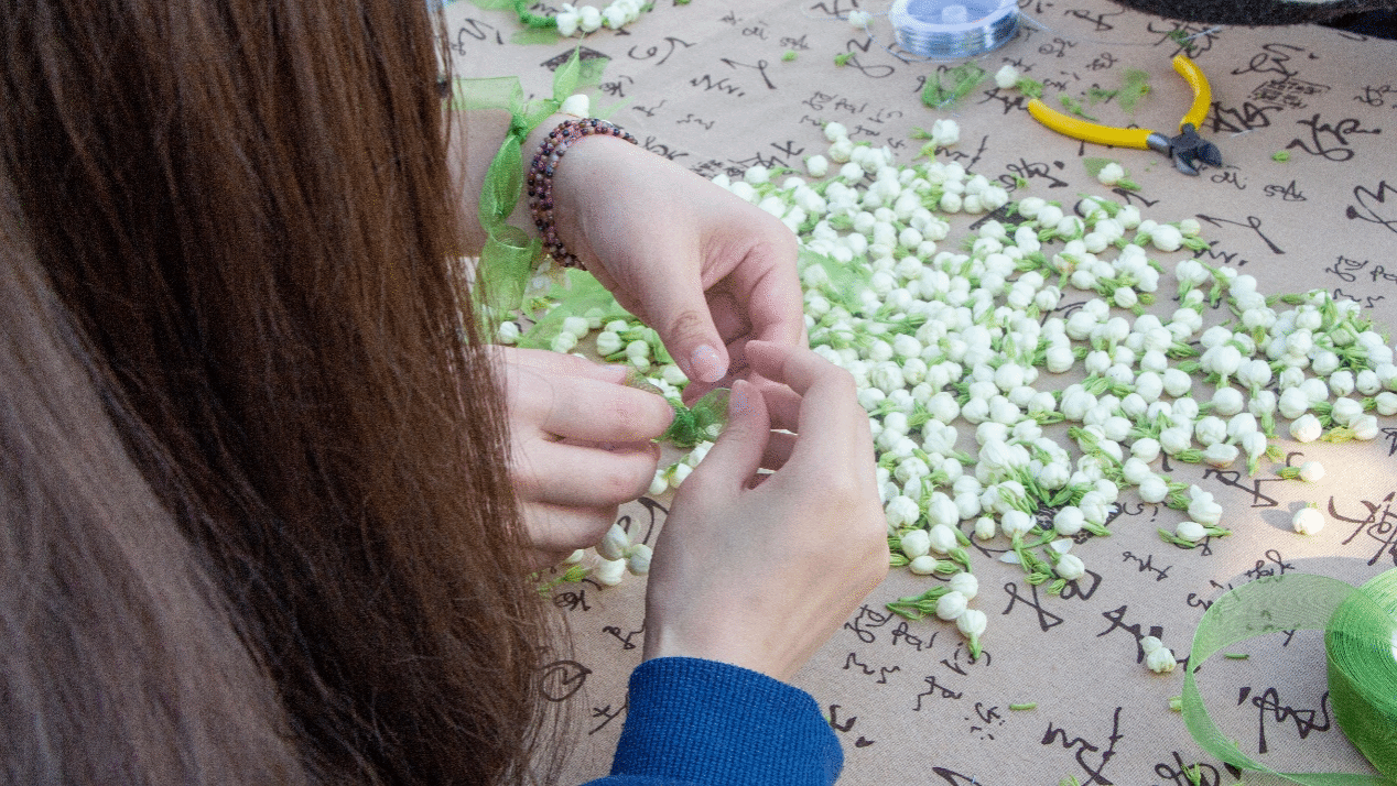 “青马工程”完满教育学生骨干培养计划中阶5、6、7班进行非遗制作以及环保绘画、茉莉花手环的活动。传承非遗梦DIY团扇以及油纸伞将带同学们领略传统文化与戏剧相结合的魅力,同学们沉浸式体验创造每一份独一无二的“艺术品”;通过“以戏入香”的理念将戏剧艺术中传达的情感与思想融入,以茉莉花的独特清新气味诠释存于氤氲中的艺术。从视觉、嗅觉等多方面带领同学们沉浸式体验戏剧节的独特韵味。