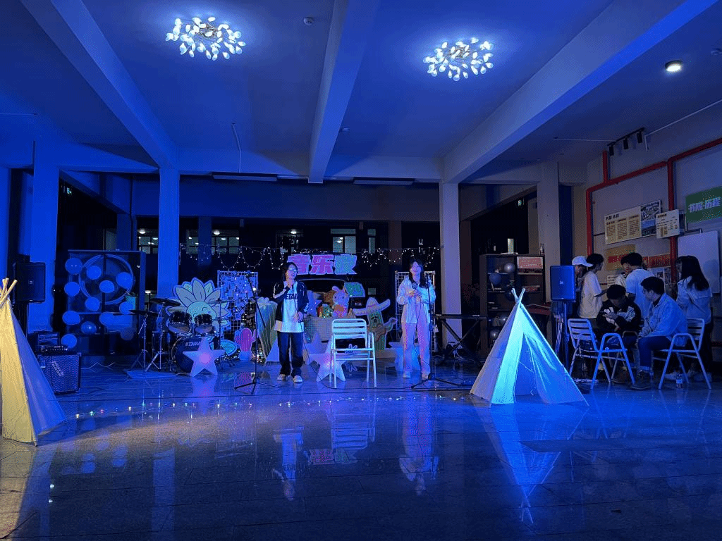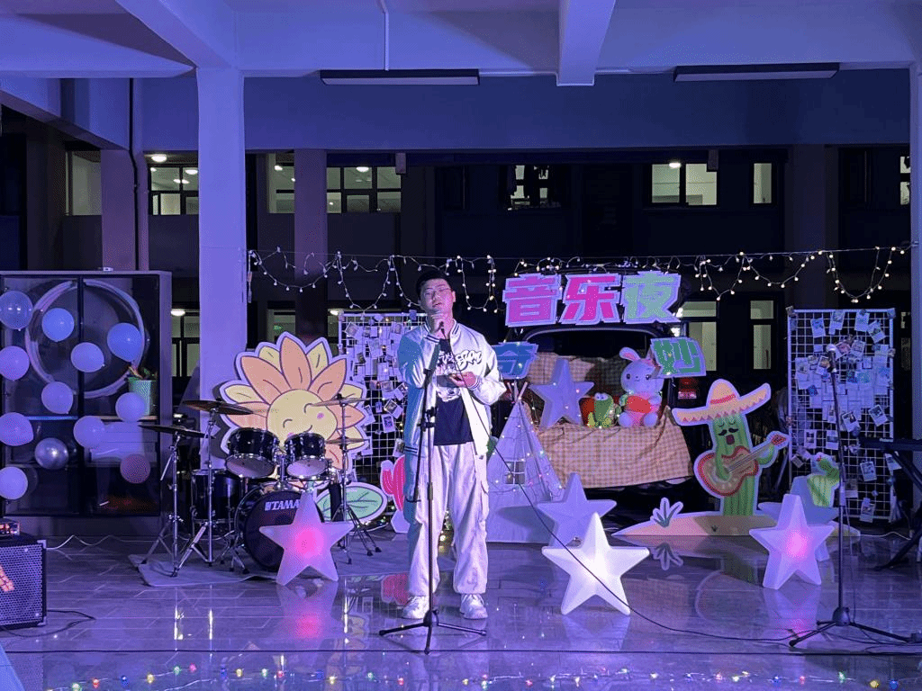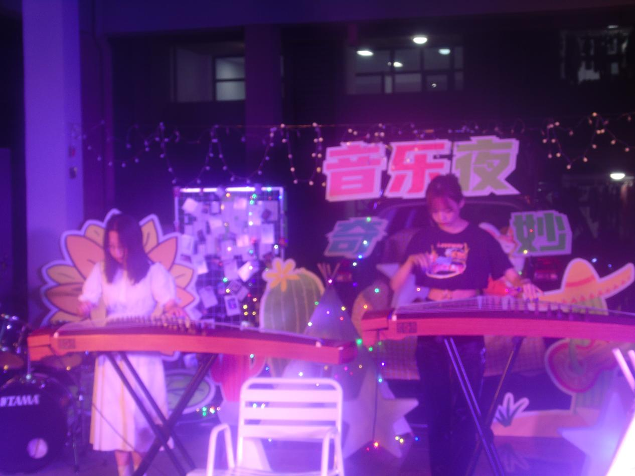 本次“奇妙音乐夜”的活动为同学们创造交往环境,为喜欢音乐的同学提供展示自己的平台,提高自信心,让同学们勇于表现自己,展现自己的才能。活动前,老师和表演人员一同精心彩排准备节目,两个社团的社员互相合作,从一根根彩灯布置场地、到一个个音键调试设备,只为这一场活动能够呈现最好的效果。 民谣、嘻哈、流行、以及乐队等多种类型的歌曲,也有古筝、吉他、贝斯、架子鼓等乐器的表演,这个夜晚,以音乐来共度,为平淡的生活增添一点社团乐趣。