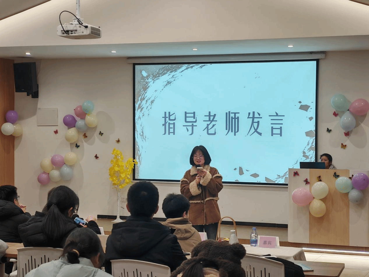 綦迹创意文学社创始人、綦迹文化产业工作室指导老师萧婷婷老师作为本次活动特邀嘉宾,致辞道:“‘蝶伴而行’,这个名字本身就蕴含了无限的美好与深意。它不仅仅是对散文这一文学体裁优雅轻盈、自由飞翔特性的形象描绘,更是对我们每一位文学追梦人心灵旅程的生动比喻。在过去的一年里,无数篇以‘蝶伴而行’为主题的散文作品,如同一只只翩翩起舞的蝴蝶,穿越四季,跨越时空,将我们内心的情感与思考,细腻而深刻地呈现给了这个世界。今天,也是对大家承诺的兑现,让我们相聚在第二届蝶伴而行散文颁奖典礼的现场。”