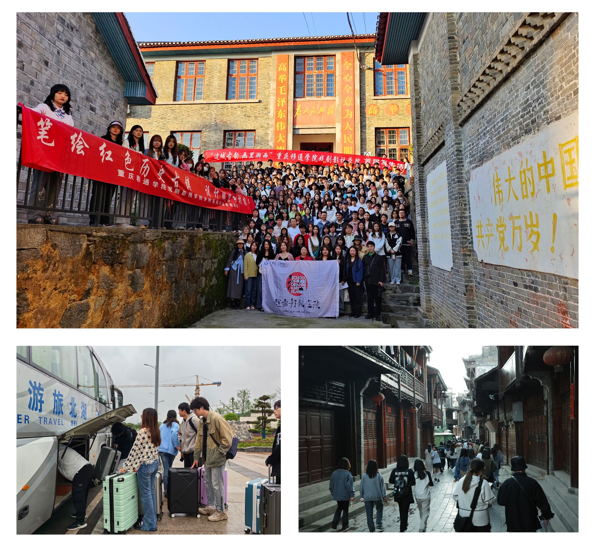 4月6日,戏剧影视学院动画专业师生顺利抵达洪安边城,随后在领队的引导下,前往国立茶峒师范旧址进行参观,同学们在红色故事的熏陶下,全体师生爱党、爱国、爱社会主义的情怀得到增强。