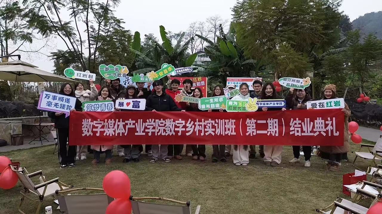 在数字浪潮涌动的今天,一场旨在培育乡村数字化人才的实训班悄然结出了丰硕的果实。2024年12月20日下午2点,重庆移通学院数字媒体产业学院数字乡村实训班(第二期)师生受綦江区三角镇红岩村第一驻村书记张庆的热情邀请,在红岩村瀛山院子酒店举办结业典礼。数字乡村实训班(第二期)经过8次的学习与实践,学员们共同见证了彼此的成长与蜕变,也为这段宝贵的学习经历画上了完美的句号。