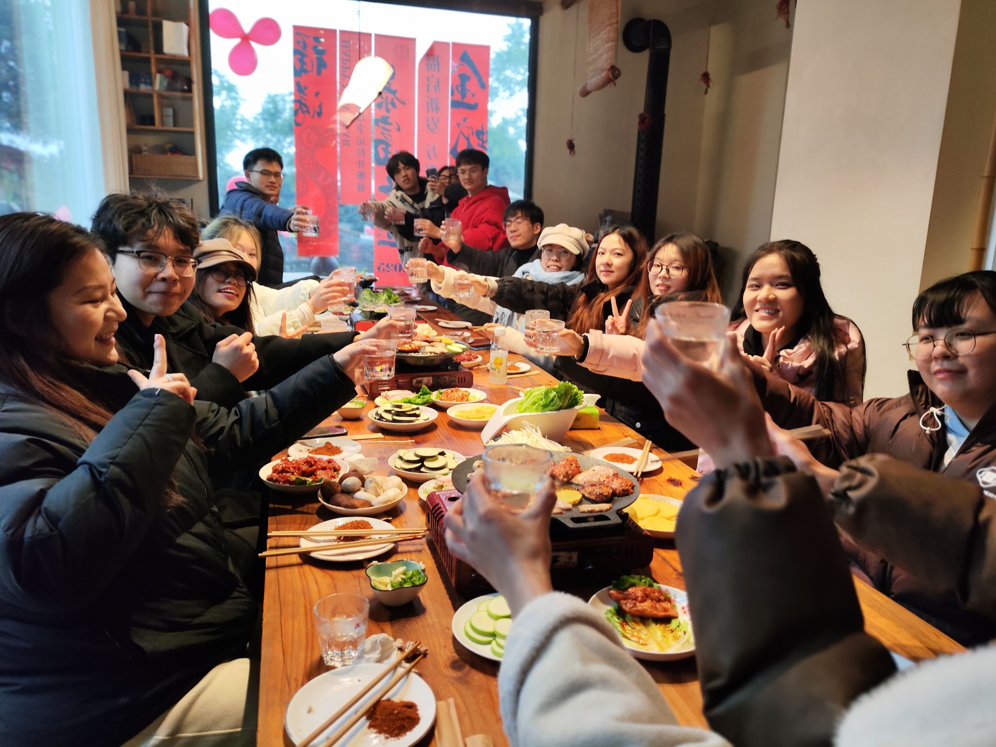 典礼的尾声,一场别开生面的美食盛宴悄然上演,学员们纷纷化身大厨,亲手包饺子、烤肉,将满满的热情与心意融入每一道佳肴之中。现场弥漫着食物的香气,大家围坐一堂,共享这份由自己亲手创造的美味,气氛温馨而融洽。在欢声笑语中,学员们品尝着美食,畅谈着学习期间的心得体会,分享着各自的故事与感悟。从专业技能的提升,到团队协作中的趣事,再到对未来工作的憧憬与规划,每一个话题都引发了大家的热烈讨论与共鸣。