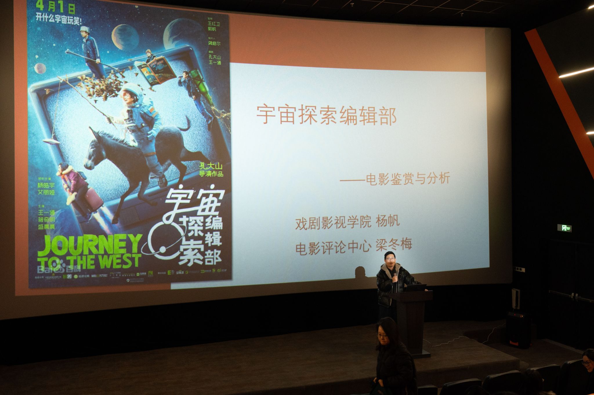 2024年12月11日,由戏剧影视学院与电影评论中心共同建设的融合课程《影视批评》影院课在移通影院四号厅成功开展。本次课程成功邀请了第36届中国电影金鸡奖最佳编剧奖得主王一通线上参与,形成了与中国电影行业最高水准人才的接轨。深入挖掘了双部门联动融合的教学改革与尝试机能,借助《影视批评》课程在双部门中的核心作用,充分体现出着眼内涵建设、注重跨学科交流的建设思路。本次授课由戏剧影视学院教师杨帆、电影评论中心教师梁冬梅共同主讲,戏剧影视文学、戏剧影视美术设计、电影制作的多位老师也莅临现场并发表观点,与22级戏剧文学专业全体同学们一起观摩、分析、解读了电影《宇宙探索编辑部》。本电影的编剧、主演,第36届中国电影金鸡奖最佳编剧奖得主王一通为重庆移通学院戏剧影视学院的同学们录制了交流视频,表达了对重庆移通学院育人模式的认同,以及对同学们的深切期望与鼓励。