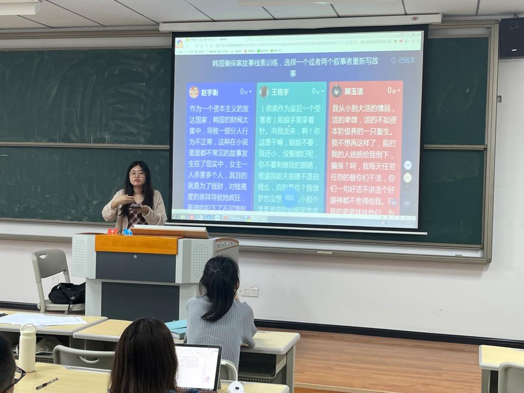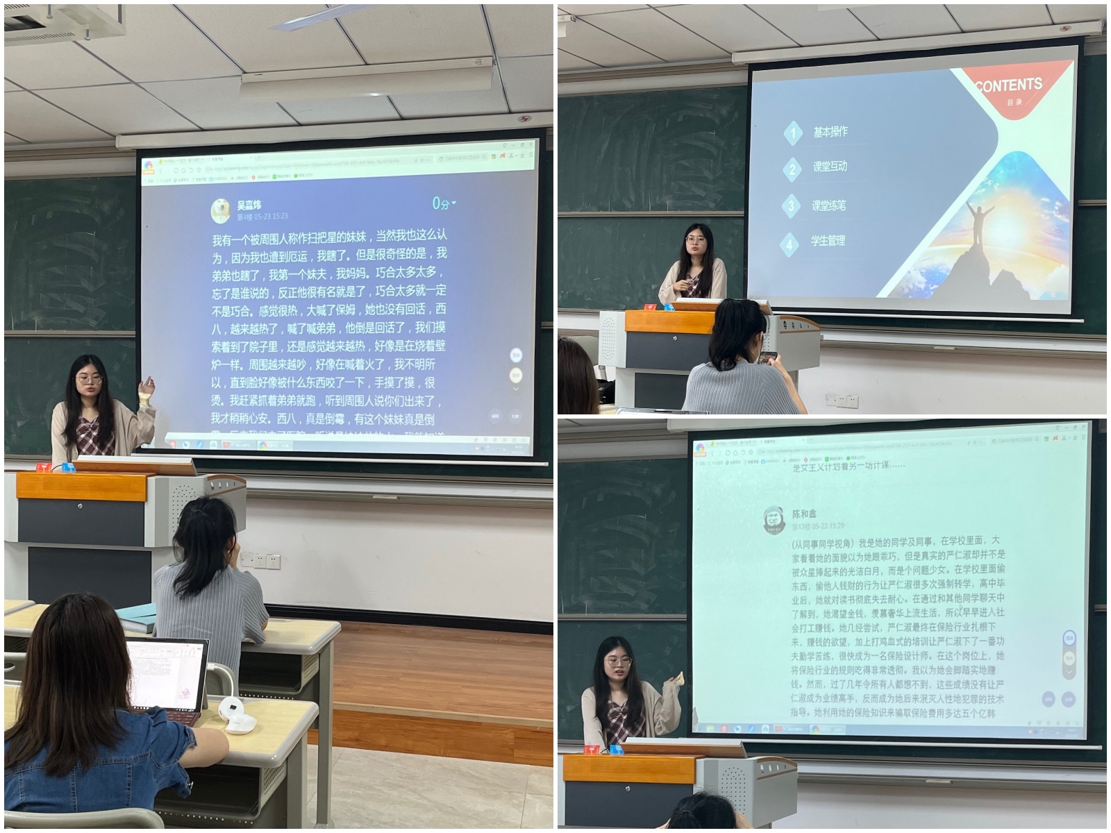 6月1日下午,创意写作学院在仁者楼309教室举办“学习通在创意写作教学中的应用”实践分享会,李慧文老师为大家分享了她在实际教学工作中利用超星学习通平台进行课程教学模式改革的经验。分享会由副院长苏瓷瓷老师主持,学院全体教师参加了会议。
