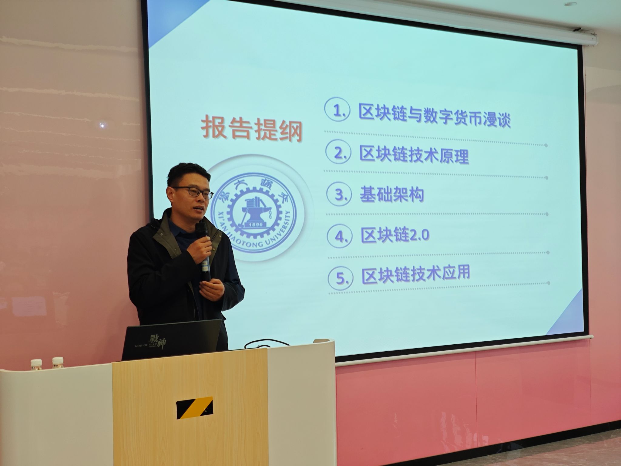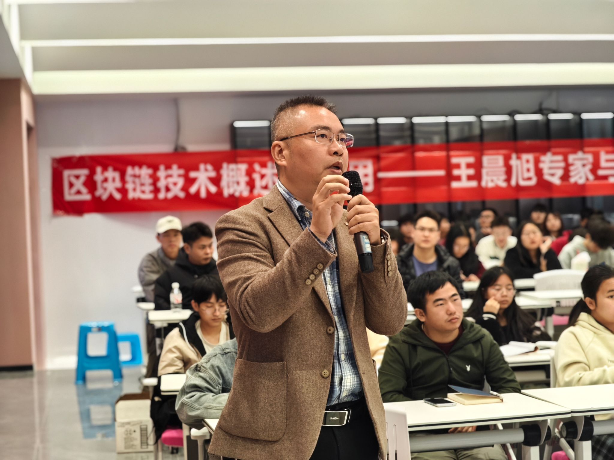 王教授以社会实时热点为切入点,引导学生思考比特币及其背后的数字货币生态,生动揭示了数字货币与传统移动支付的核心差异。随后,他围绕“区块链技术概述及应用”这一主题,详细讲解了区块链技术的核心原理,包括去中心化、分布式账本、不可篡改等特性,并深入剖析了技术背后的运行机制。从多个角度深入展开讲解了区块链技术的关键知识与实际应用,帮助在场师生全面认识这一前沿技术。