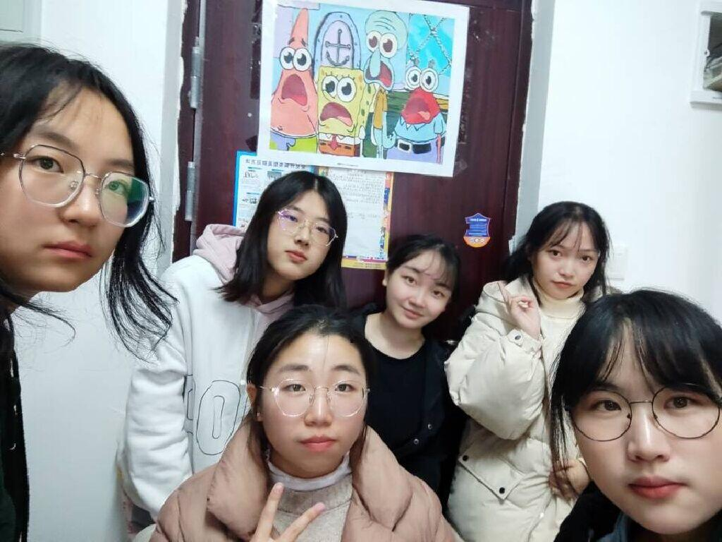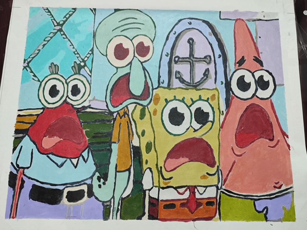 保持童心,永远向往美好生活并热爱生活。N415的每一位室员都怀揣着对大学校园生活的美好憧憬,在日常生活中常会一起分享幼时乃至现在仍记忆深刻的事情,对生活永远充满着真切的希望与无限的活力。寝室里最珍贵的宝物,是大家共同举起画笔,携手描绘出的一幅卡通画,画上面是天真无邪的海绵宝宝、重情重义的派大星和充满爱心的蟹老板,每一个鲜明的角色都是大家的缩影,都是儿时至今内心仍跳动着的真善美。