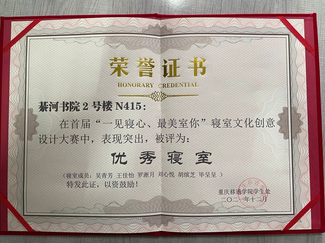 编者按:为持续深入推进标准化宿舍建设,树立先进典型,发挥榜样力量,充分发挥环境育人功能,营造学风浓厚、氛围和谐、卫生文明的宿舍环境。以学生习惯养成教育为核心,在实现学生宿舍精细化动态管理的同时,突显学生宿舍精神文化的感染力,制度文化的约束力,行为文化的示范力,环境文化的熏陶力,加强宿舍家文化建设,创建星级寝室榜样引领,合力共建优良的宿舍学习生活环境。学生处官网将推出优秀寝室系列报道。