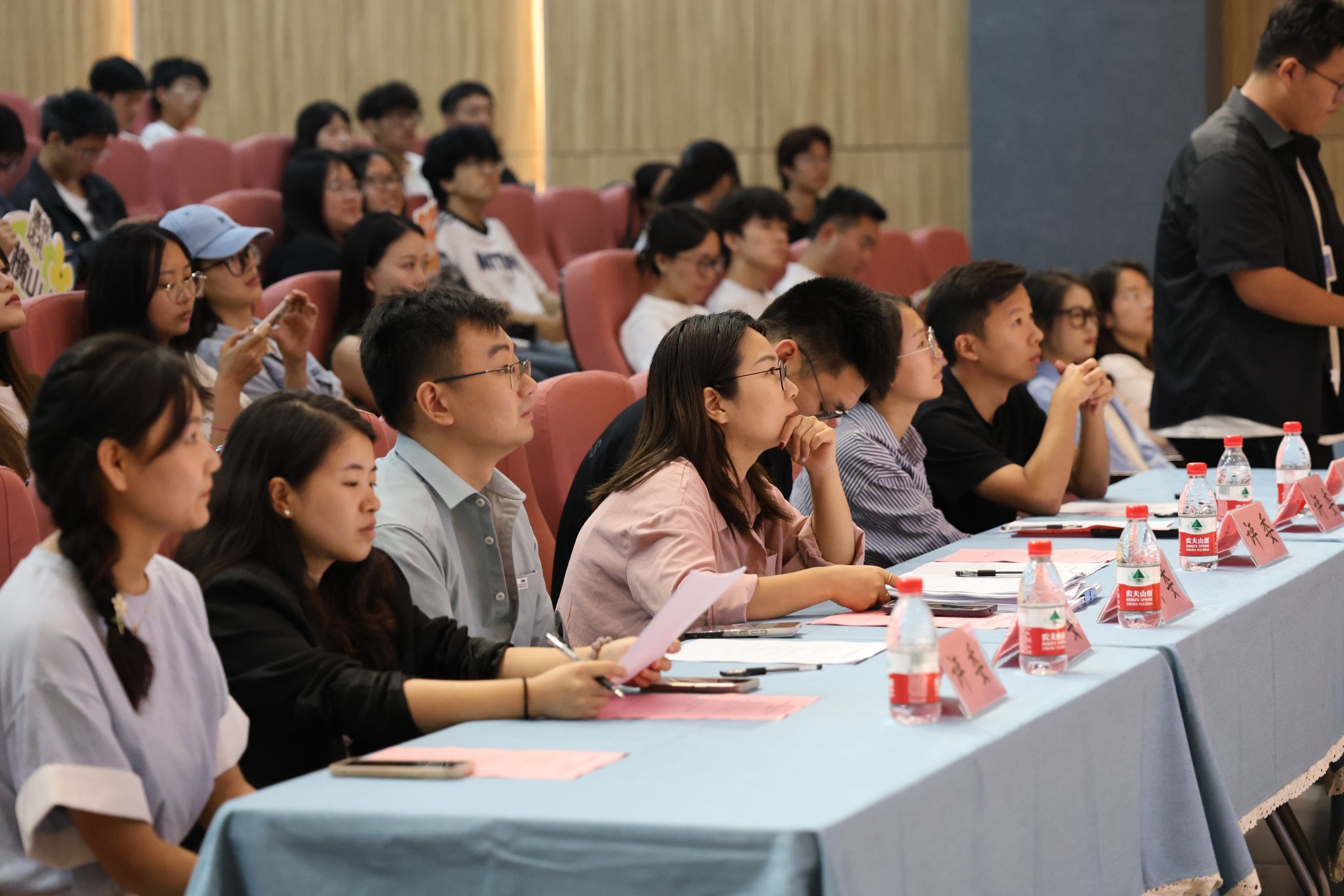 6月11日中午,最终的答辩大会于贤者楼131多功能报告厅顺利开启。答辩现场邀请到书院部副部长曹玉姣、瀛溪书院综合办公室主任卢柯毓、古剑书院综合办公室主任卓嘉、綦河书院综合办公室主任张天赐、横山书院综合办公室主任陈南西、观云书院综合办公室主任杜荧、玉棠书院综合办公室主任王江文担任评委,丁山书院综合办公室主任赵锦阳、南江书院综合办公室主任罗美琪及书院全体导师带领自治委的同学来到现场,一睹各书院的风采。