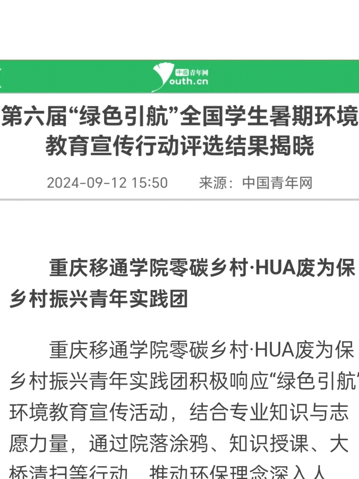 此次我校“零碳乡村·HUA废为保”乡村振兴青年实践团“三下乡”社会实践专刊稿件被《志愿青年专刊》首次录入,是对我校社会实践育人成果的极大肯定。未来,我校将继续聚焦“生态+”,持续拓展绿色环保志愿服务领域,引导移通学子积极投身到社会实践的大潮中,为乡村振兴和环保行动注入源源不断的青春力量。