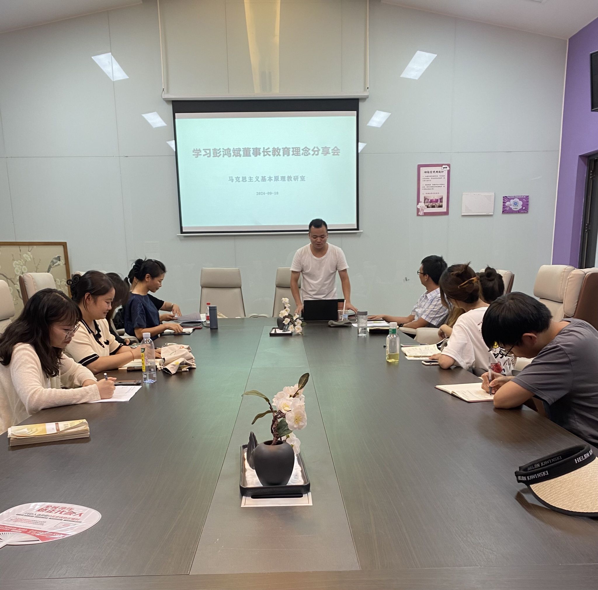 为学习贯彻彭鸿斌董事长教育理念,进一步深化教师对我校育人模式和育人目标的理解,9月18日下午,马克思主义基本原理教研室于观云书院小雪会议室开展“彭鸿斌董事长教育理念学习研讨会”。本次学习会由马克思主义基本原理教研室主任陈静副教授主持,陈安鹏老师领学,教研室全体教师参与。