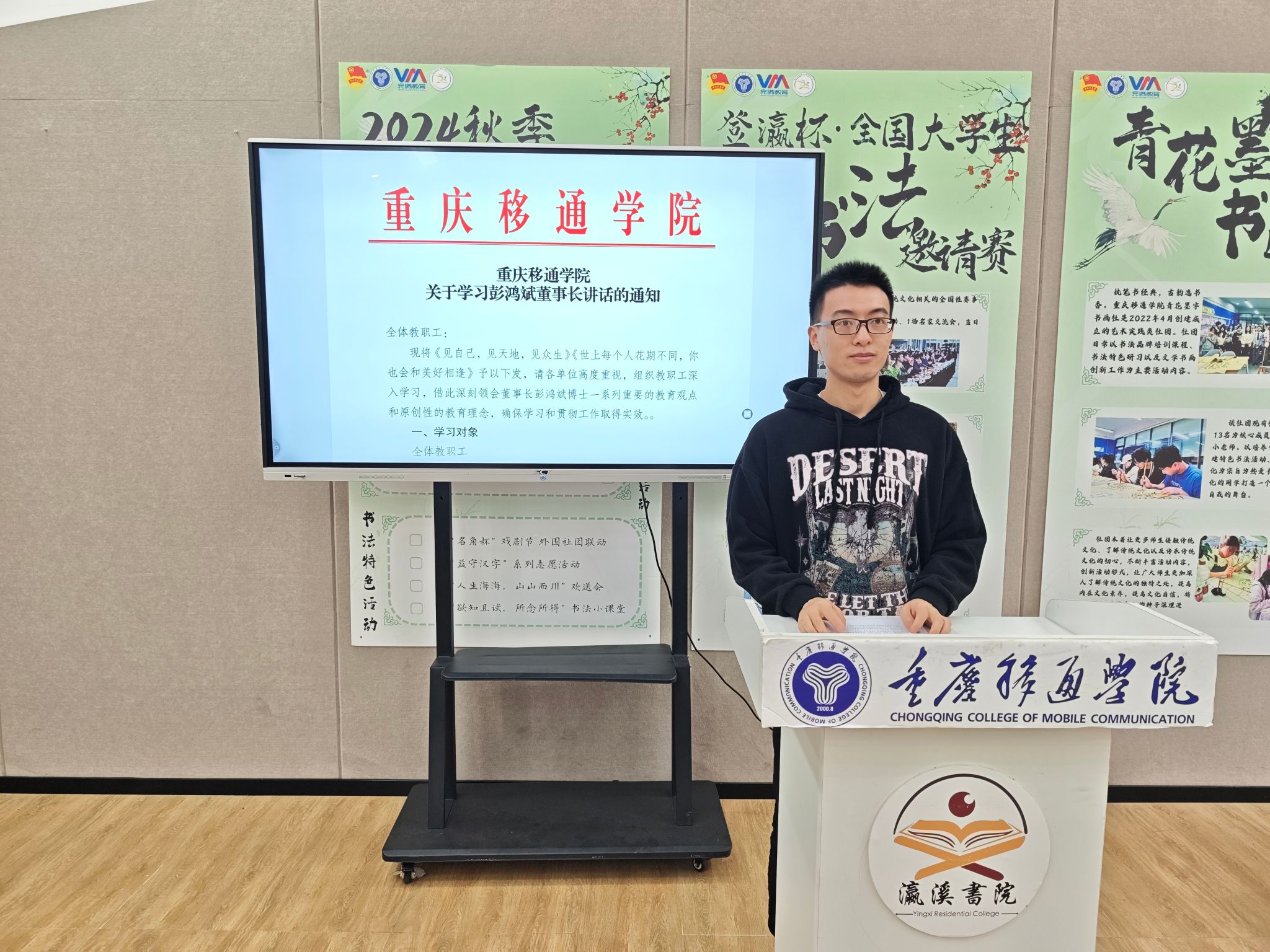 本次会议首先由实训中心向春红老师带领大家学习彭鸿斌董事长的讲话——《话成长,赴未来》。通过对董事长讲话的深入学习,我们清晰地认识到学校在面对各种挑战时积极探索创新教育模式的决心和努力。学校不仅关注学生的专业技能培养,更注重学生的人格塑造和全面发展;同时,也为教师提供了广阔的发展空间和明确的成长方向。在未来的工作中,我们应深刻领会讲话精神,将其融入到日常教学和管理工作中,共同努力提升学校的教育质量,为学生创造更美好的未来,为社会培养更多具有创新精神、实践能力和健全人格的优秀人才,助力学校在教育领域不断迈向新的高度,实现从优秀到卓越的跨越,共同缔造重庆移通学院的教育品牌传奇。