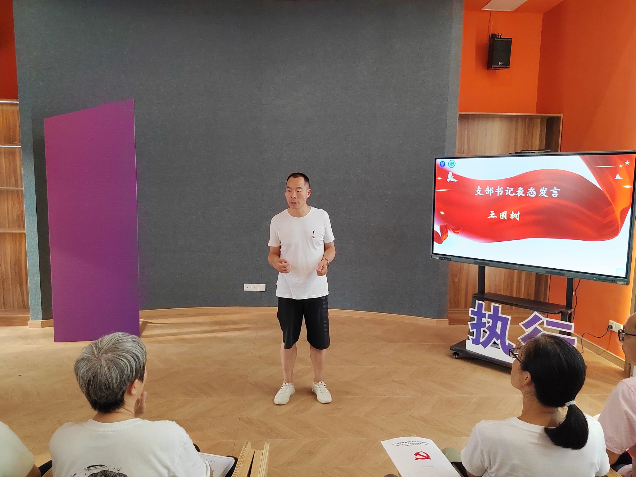 最后,党支部书记王国树同志总结表态。他表示要继续加强主题教育理论学习,活动开展,继续深化整改工作,切实把整改成果转化为实际成效;要进一步提高政治站位,增强“四个意识”、坚定“四个自信”、做到“两个维护”;要进一步加强党性修养,不断提高自身素质和工作能力。
