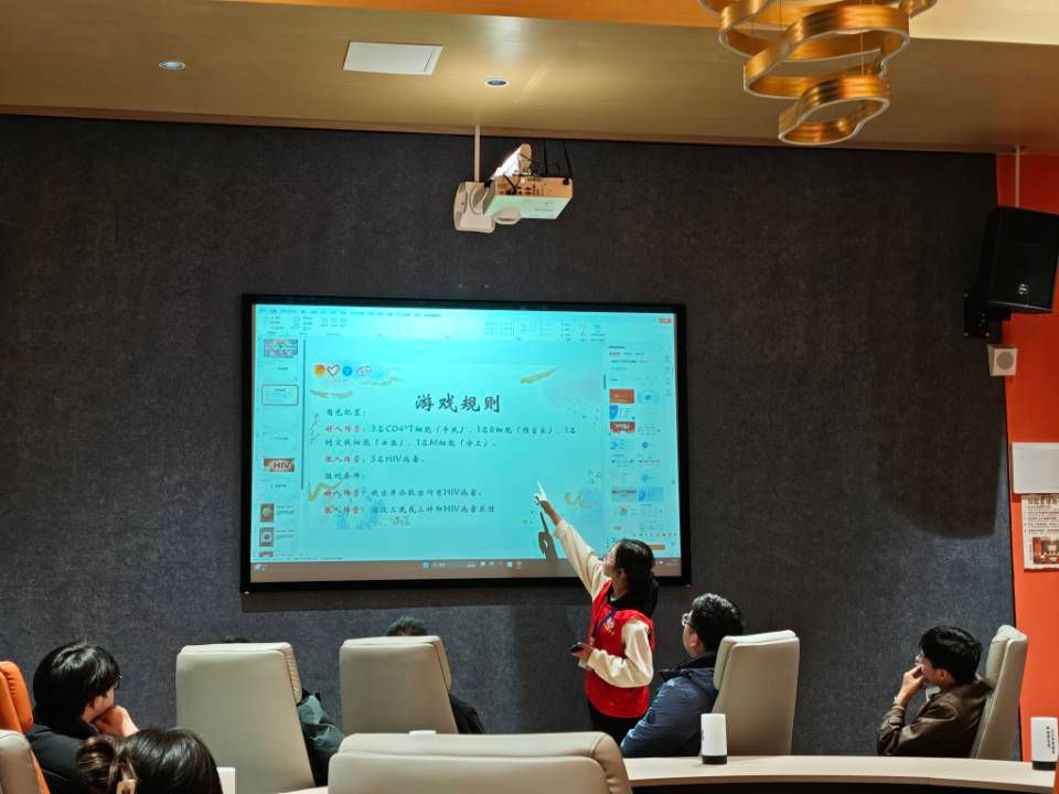 3月14日在下午5点至7点,天使关“艾”志愿服务专项支队举办了“红丝带之夜,HIV病毒侵袭”—防艾狼人杀巅峰赛活动,此次活动共计参加36人,活动共计受益60余人。活动中,同学们积极参与,展现了超高热情,在了解艾滋病相关知识的同时也锻炼了思维能力,也得到了同学们的强烈响应。通过桌游防艾狼人杀,同学们开始关注艾滋病相关知识,并且打破了对艾滋病的无知和误解,减少了恐惧和歧视,也相信同学们更加懂得如何保护自己。同时志愿者们也在此次活动中深入理解了防艾知识,还为消除疾病歧视、推动健康事业出力,感受到自身价值,强化社会担当,激励持续参与志愿服务。