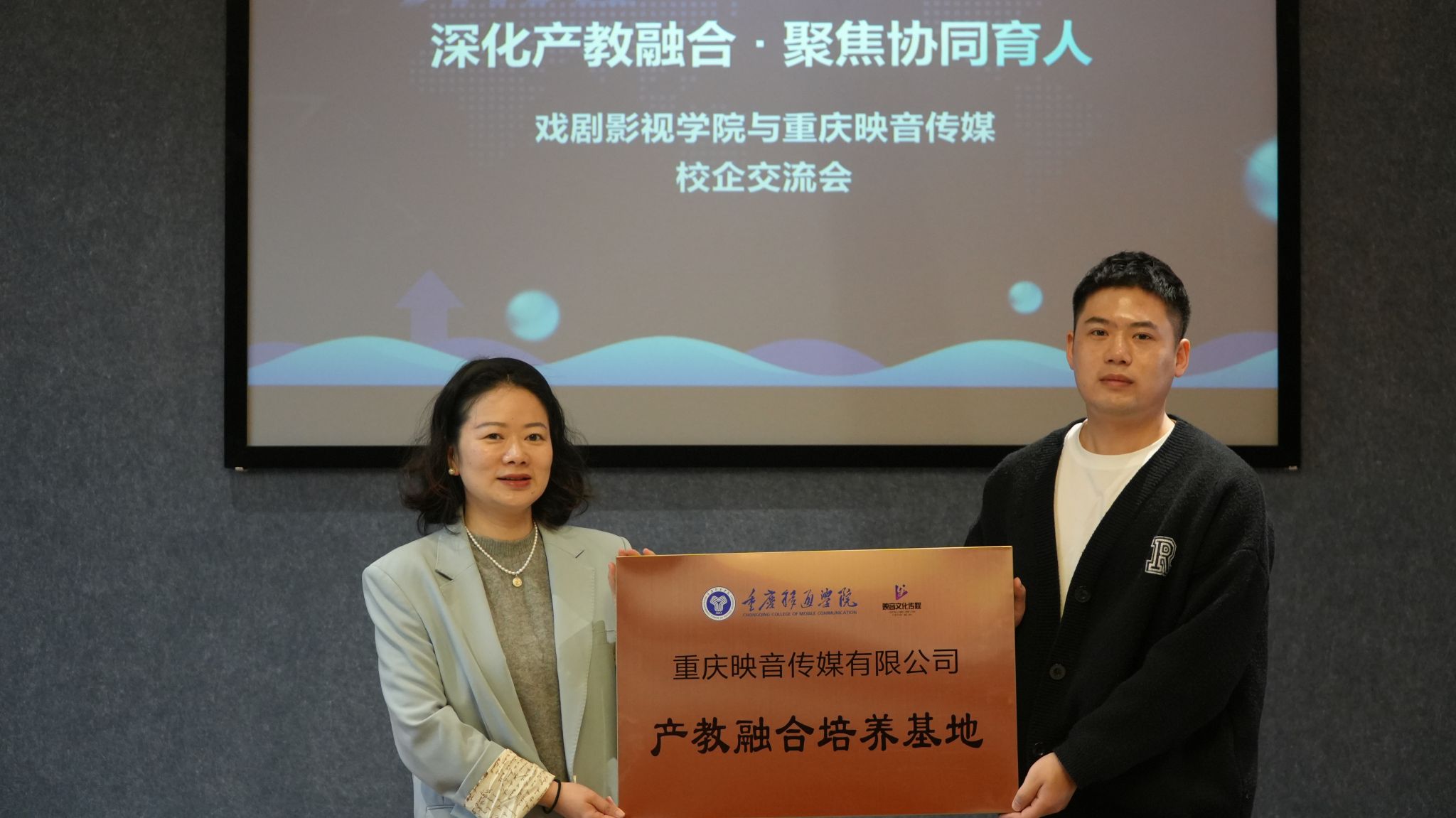 优化校企合作模式、打造育人平台。王芳院长表示,本次与重庆映音传媒的合作将以工作室的形式开展,校企双方通过共建校企合作学生工作室,不断探索多种形式的校企合作模式,如“校企联合培养、专业人才定向培养等。更加面向行业和企业,打造产教融合、校企协同育人的平台。王院长同时提出,希望能够以校企合作建设为抓手,与企业共同搭建产学研合作育人平台,共同推进学院专业建设发展,培养出更加高素质、高应用型的优秀人才。随后,王院长和吴总监对此次校企合作进行了授牌。王院长对重庆映音传媒一行人表示热烈欢迎,向吴总监对戏剧影视学院建设的重视和参与表达了感谢。
