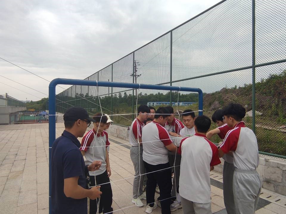 第三个项目为“生死电网”,各队员穿过网的空隙,不能触线,在25分钟内全员穿过网到达另一面则挑战成功。我们刚开始都不敢相信可以成功穿过,教练给了我们十分钟讨论时间,讨论之后想出很多方法,在不断尝试中经历过了多次失败后。虽未完成项目,但最后教练带我们总结时,更让我们懂得了团体的意义。除此之外,我们还尝试了很多其他有意思的项目,比如“取水”“盲人方阵”等项目,都让我们受益匪浅。