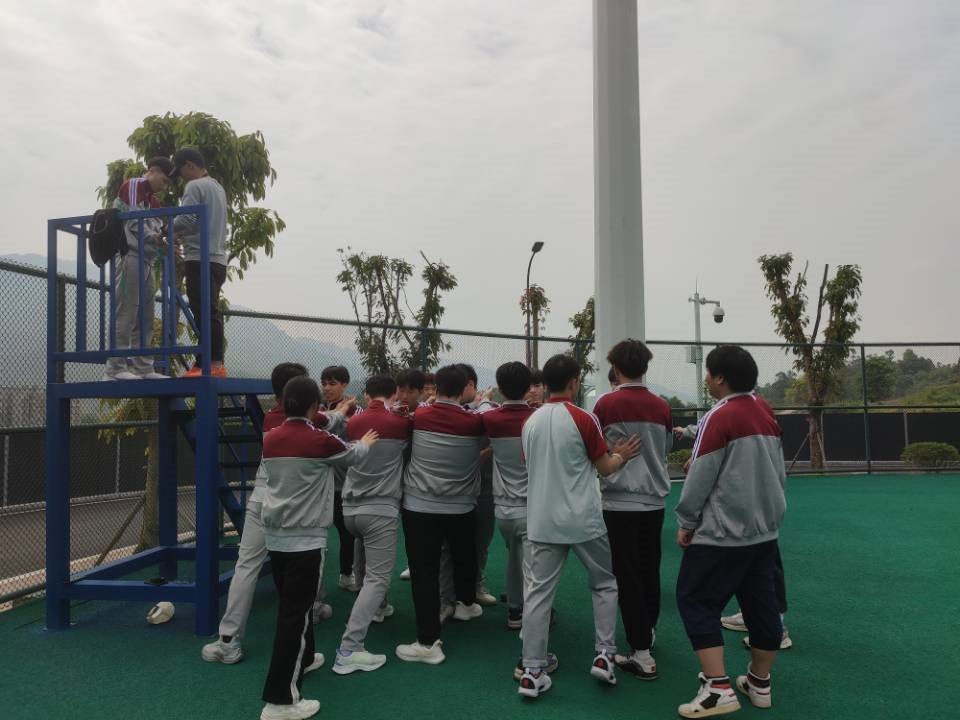 第一个项目是“信任背摔”,一个同学站在高台上向后倒下,十个同学在台下接倒下的同学。教练进行保护动作的讲解及示范后,多次强调安全注意事项。我们初次尝试这个项目都很紧张,但是在教练的指导和队友的鼓励下,我们全员都完成了这个项目。这个项目锻炼了我们的勇气,更增强了小队成员之间的信任。