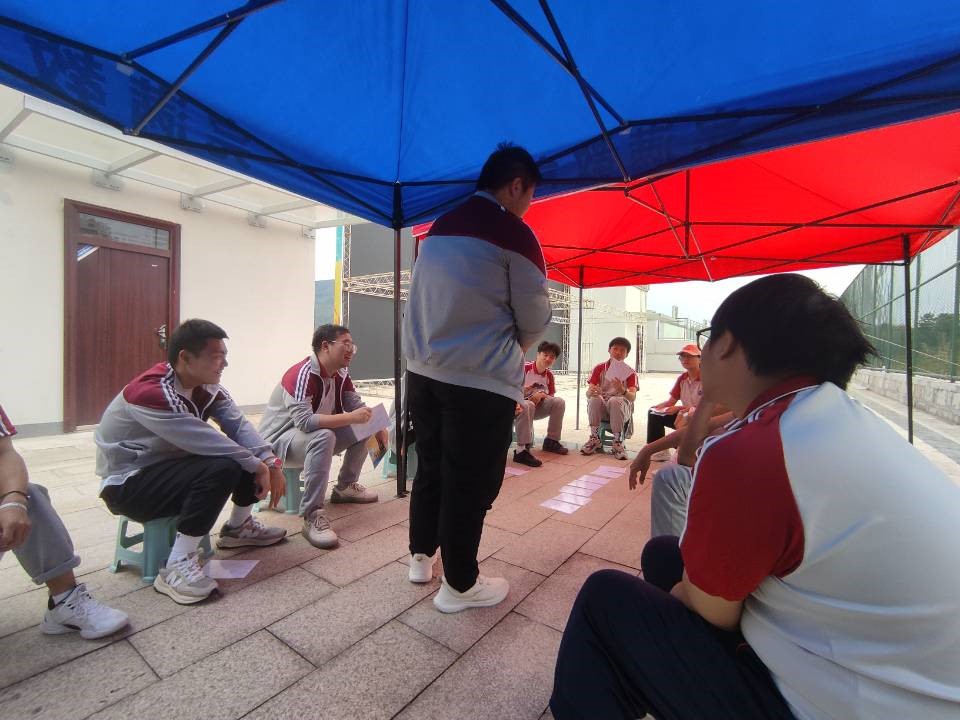 4月18日下午两点,学生齐聚智者楼103教室,在于同学相互认识后,向大家简单介绍本次营地课程的基本内容,同学们都热情澎湃,对营地课程充满期待。随后教练让同学们开始报数并进行分队,每个小队都有来自不同班的同学。经过十分钟讨论后,确定各自队伍的团队文化、制作属于小队的队旗、写好队名、口号、队歌及成员亲手签名。
