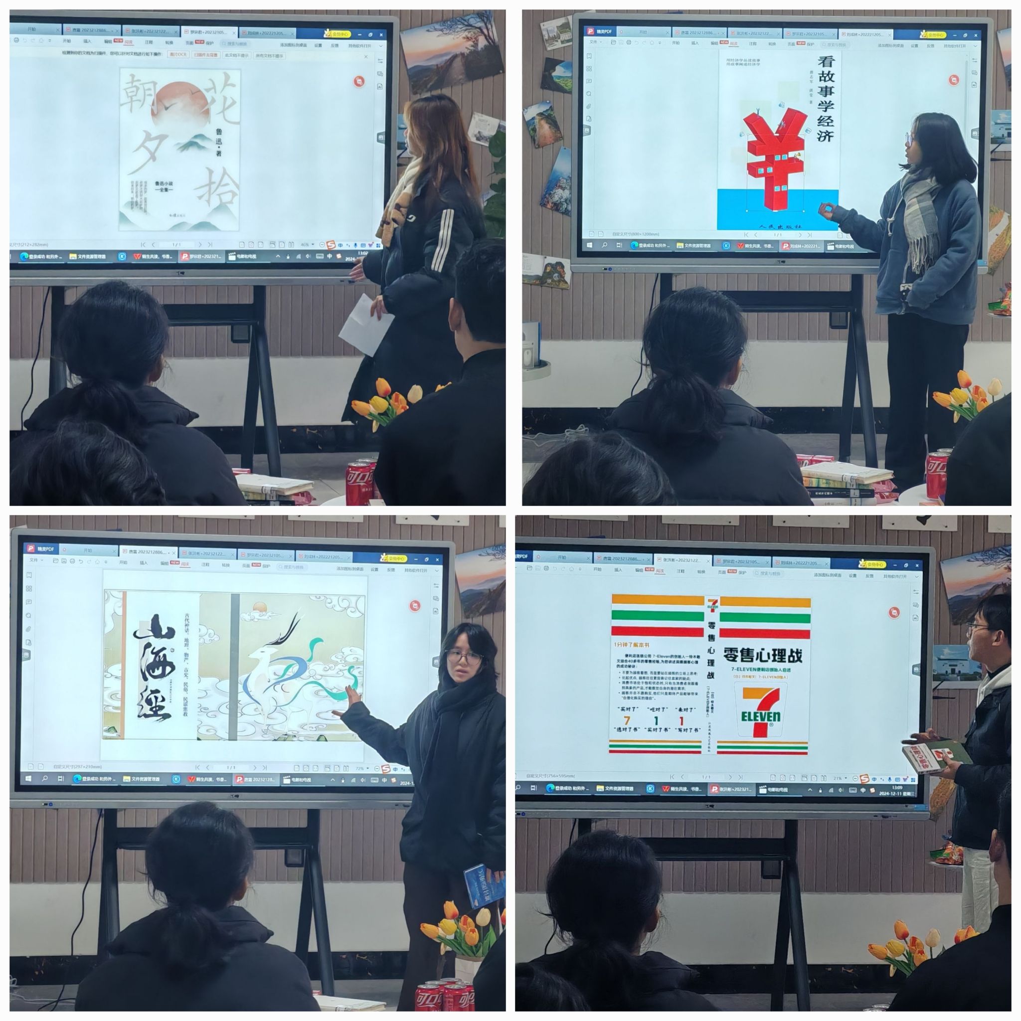 书籍是连接不同文化和时代的桥梁,它们让我们能够跨越时空,与历史上的伟大思想家对话。易宋佳珈老师分析了前面几位同学的封面设计,以专业科学的视角,通过分享的《配色设计原理》给我们讲解配色规则,传授给大家怎样能够创造出既美观又有效的设计作品。杜望老师给同学们讲解了《乡土中国》中家庭结构和人伦等内容,随着城市格局的变迁而演变,这其中都会受儒家思想的影响,也造就了《乡土中国》成为中国传统乡村社会的经典著作。毛致远老师推荐的《西方那一块土:钱乘旦讲西方文化通论》中,以中西方文化在价值观、社会结构和历史发展上的差异,而影响我们对世界的看法。“历史不是过去的东西,它还活在我们的意识中,影响着我们的行为和决策。”读过的历史书都会内化成修养,吸取前人经验,在未来少走很多弯路。