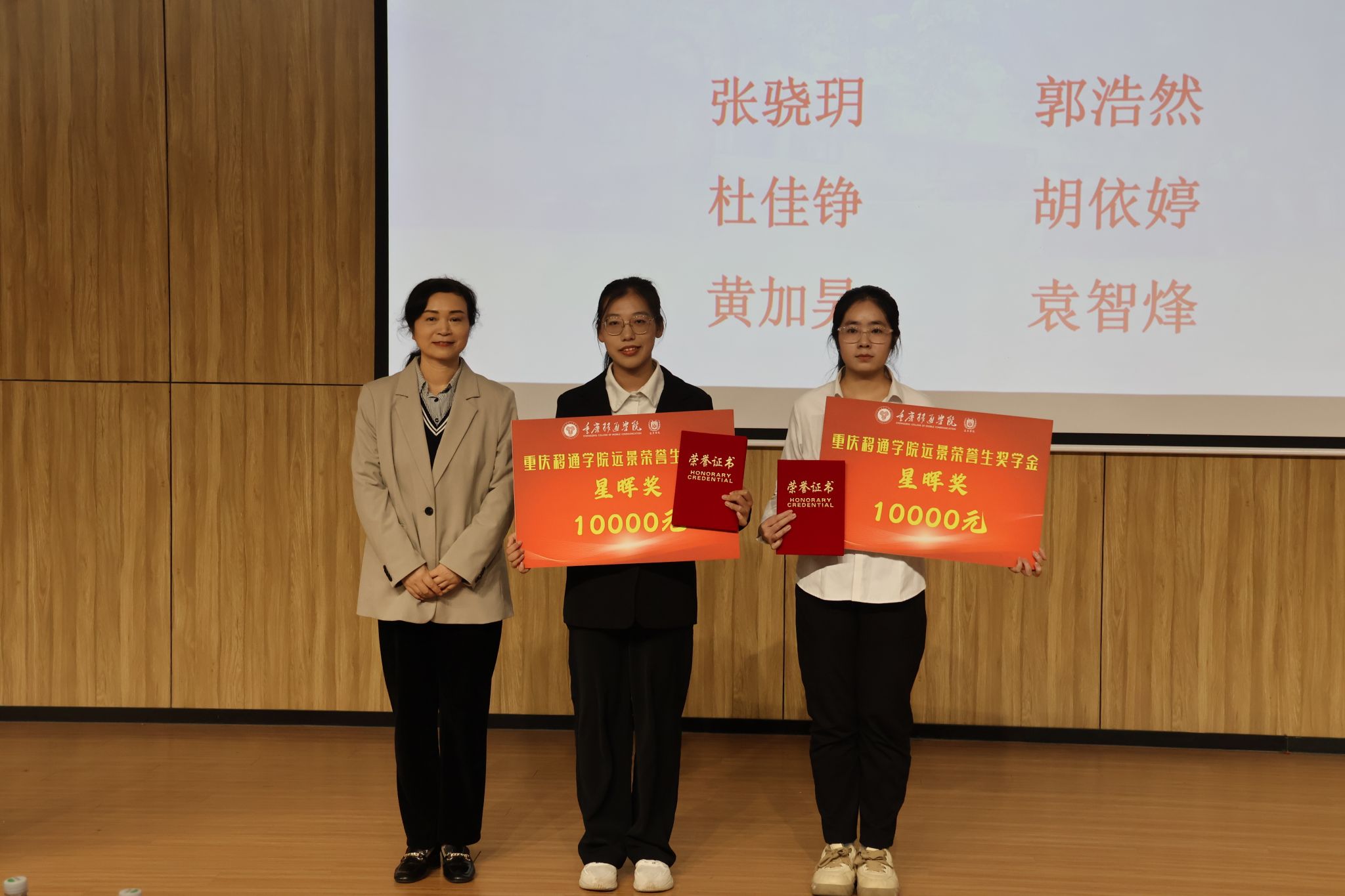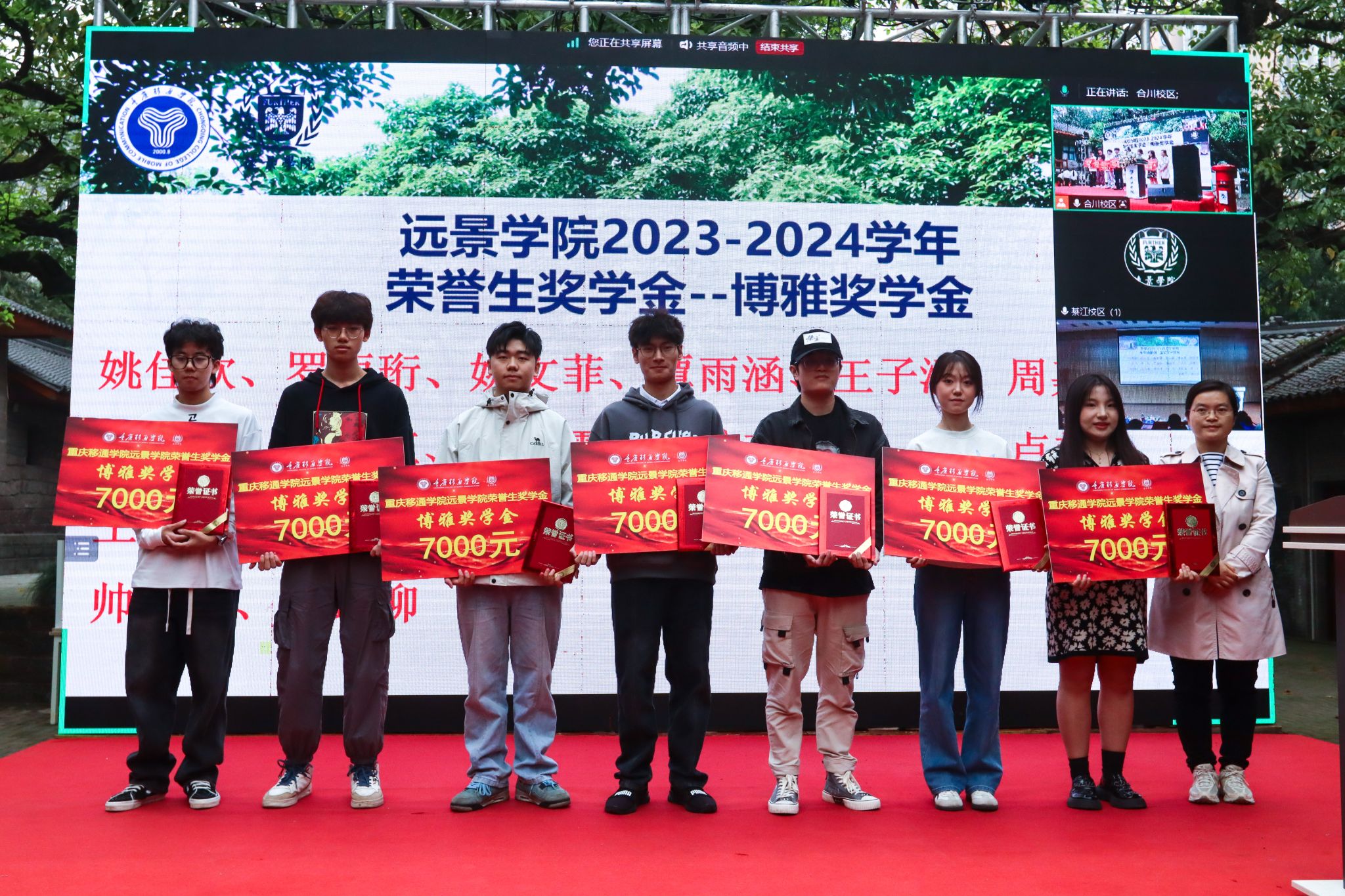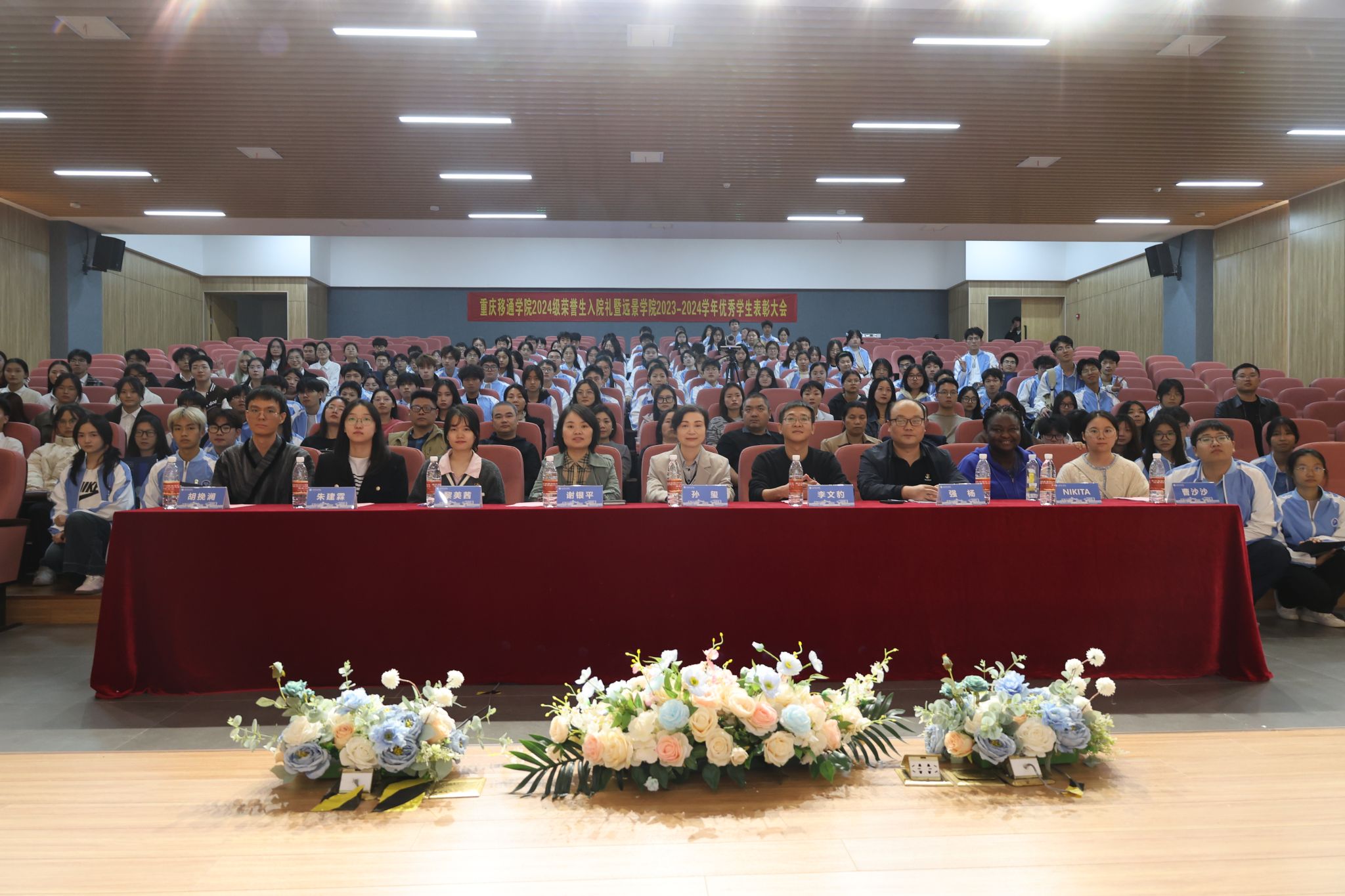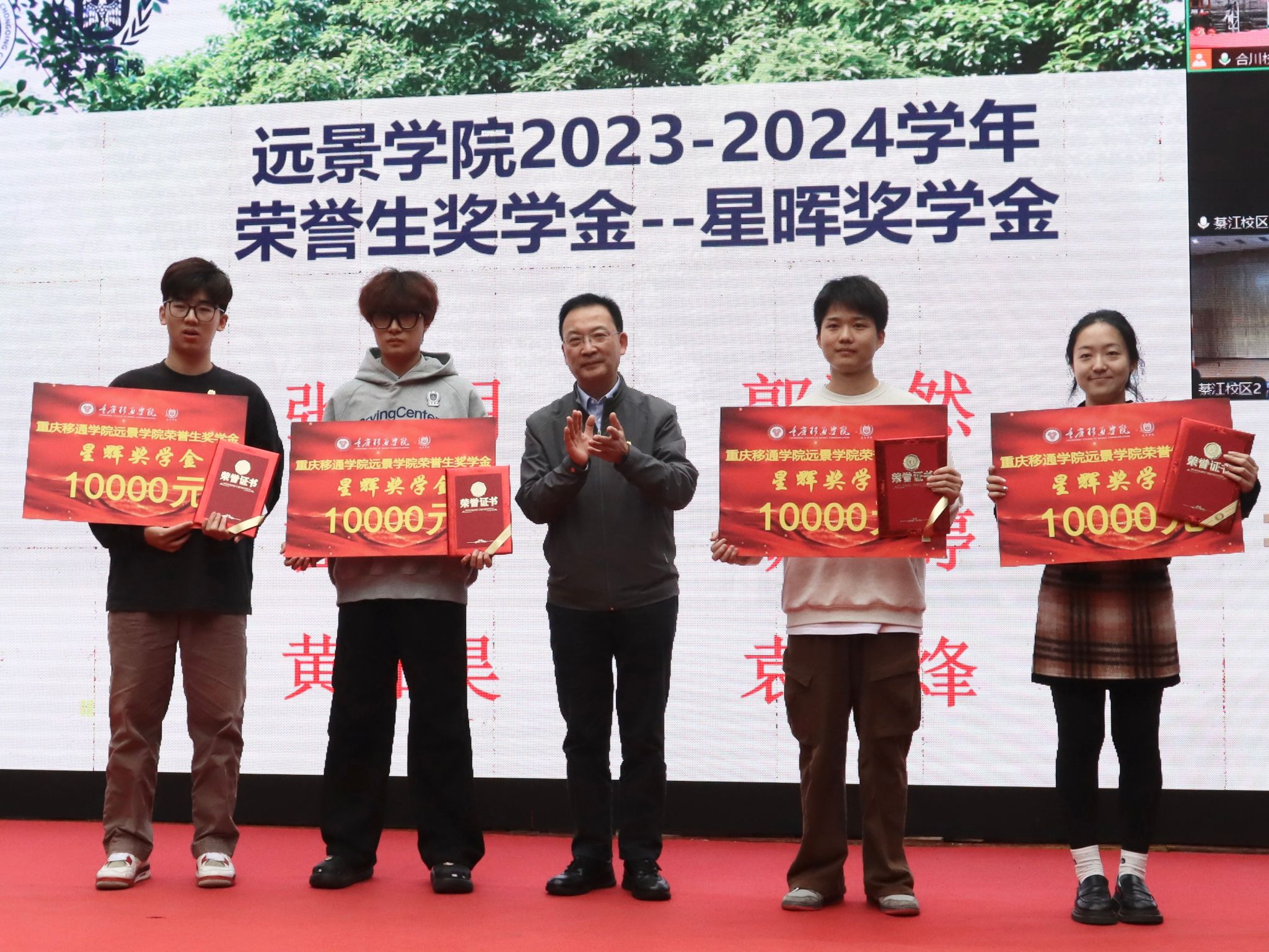 十一月的重庆,枫叶流丹,金菊绽黄。11月8日,重庆移通学院2024级荣誉生入院礼暨远景学院2023-2024年优秀学生表彰大会在合川校区菩提书院、綦江校区贤者楼同步隆重举行。重庆移通学院校长吕翊教授、重庆移通学院副校长孙玺老师、重庆移通学院副校长李文豹老师、重庆移通学院校长助理刘枚老师,重庆移通学院校长助理谢银平老师、远景学院执行院长皮若兰出席此次大会。家长代表、校友代表、远景学院教师和辅导员、高年级学生代表及2024级全体新同学们参加,大会由远景学院学工副院长李军主持。