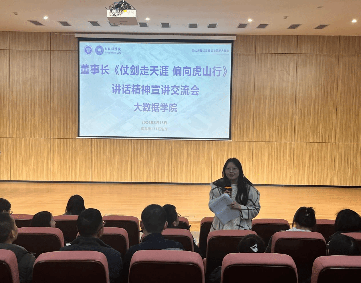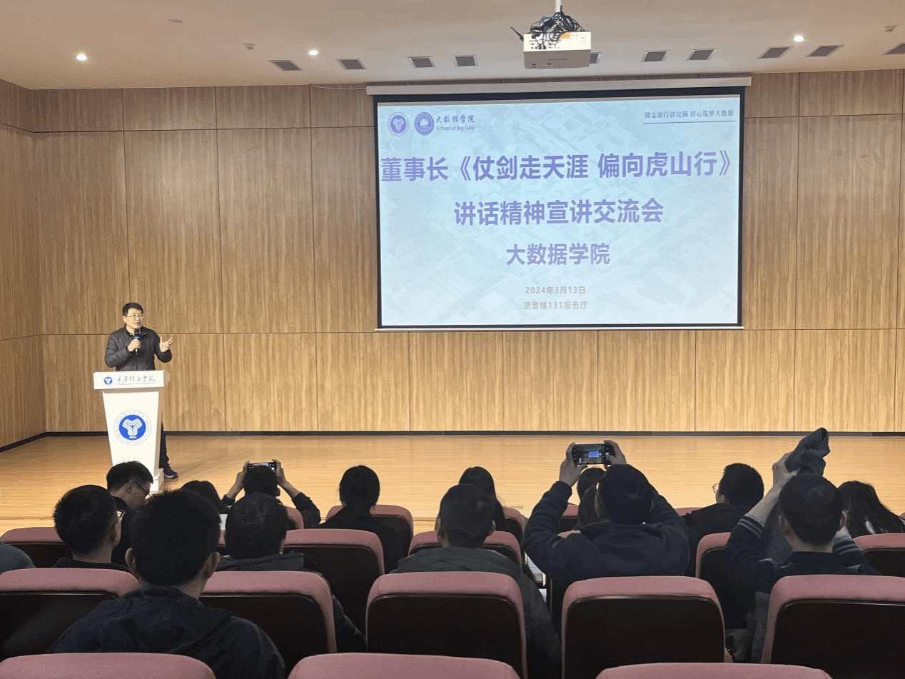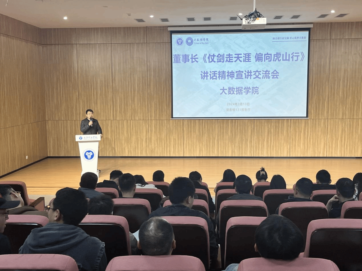 为深刻领会我校战略思想,认真学习彭鸿斌董事长讲话精神,进而全面提升教育教学质量,大数据学院于3月13日在贤者楼131开展了彭鸿斌董事长“仗剑走天涯,偏向虎山行”讲话精神宣讲交流会,本次交流会由大数据学院闫会峰院长主持。