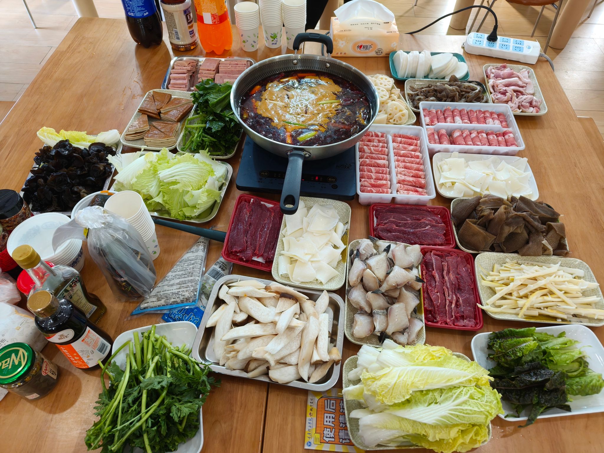 本次活动由工程管理教研室主任周梦娇老师统筹安排,供应链管理教研室主任李竺奕老师辅助协调。一早,采购的老师就列好清单,奔赴超市,去采购此次活动需要的食材。十一点,老师们都陆续抵达“观云书院谷雨·共享厨房”,开展做活动前的准备工作和场地布置。物资一到场,老师们就开始井然有序地协作处理火锅食材,清洗、切菜、炒火锅底料,各个环节都有条不紊地开展。教师们一边备菜,一边畅谈教学心得与生活琐事,气氛融洽而热烈。