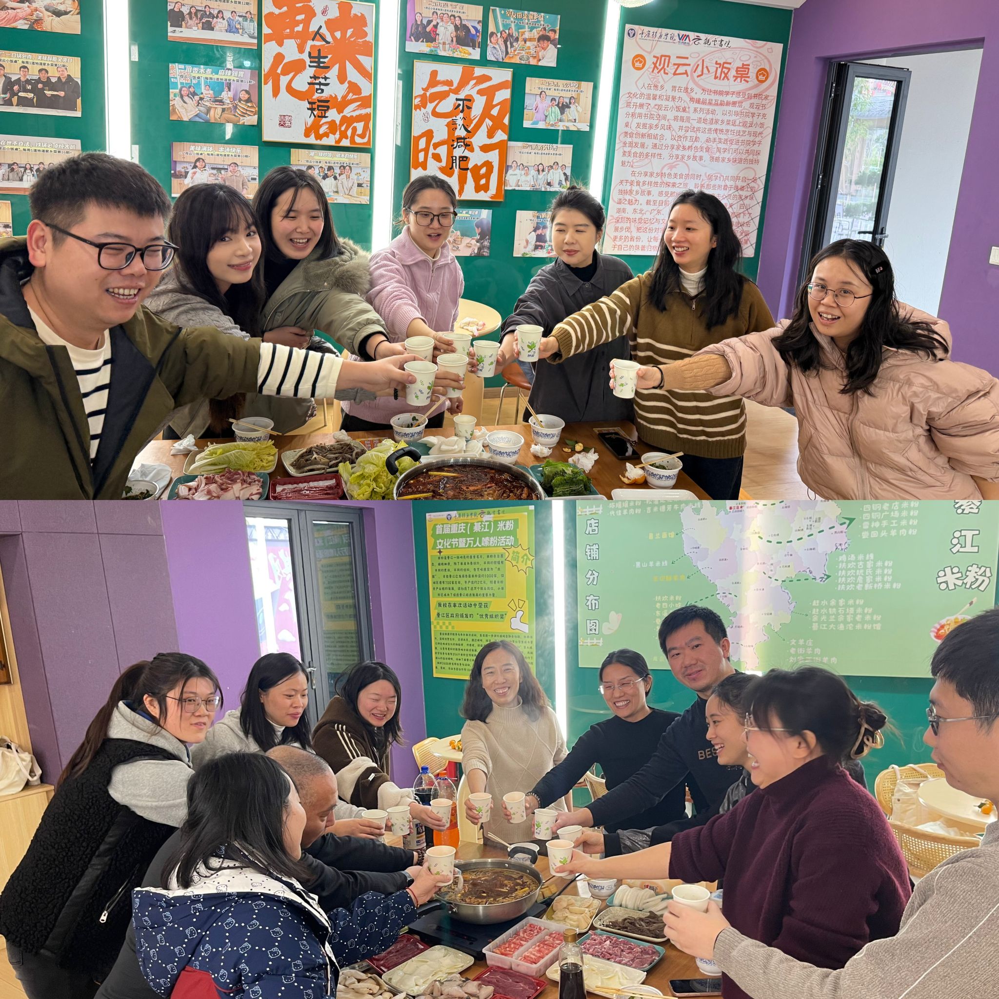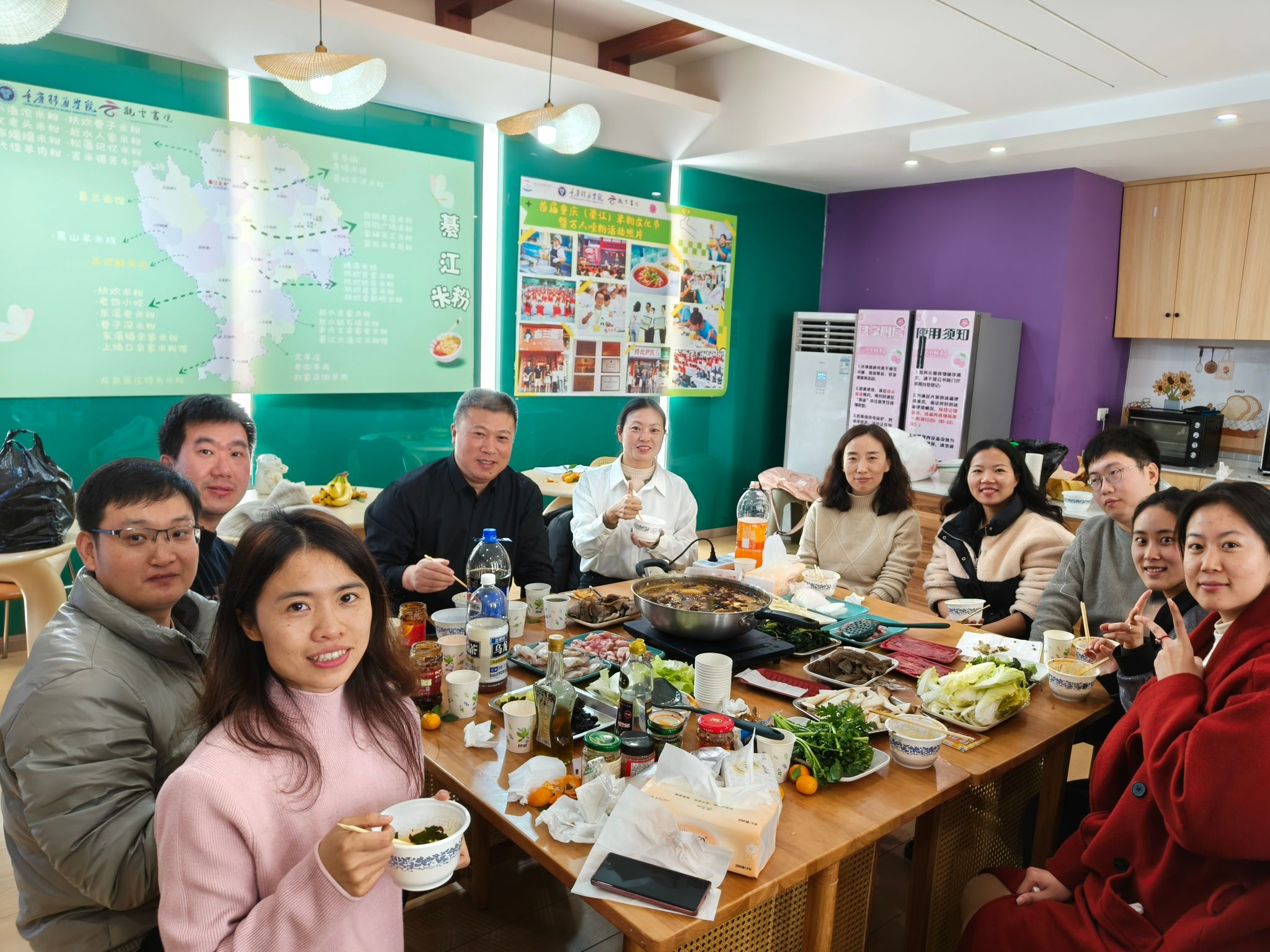 食材俱至,火锅沸腾,美味佳肴在锅中翻滚,大家围锅就坐,沉浸在这珍稀相聚的温馨时光中,细品其中的每一份欢愉。在袅袅升腾的热气缭绕间,教师们不仅细品了珍馐佳肴的醇厚滋味,更深刻体悟到了同事间那份温馨如春的关怀与温情。